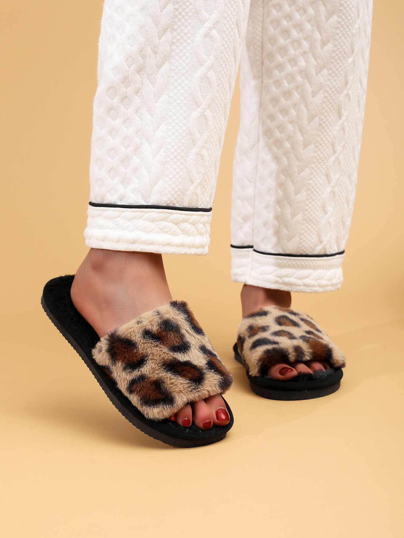 Estampado de leopardo punta abierta Zapatillas de casa transfronteriza Amazon populares zapatillas de estampado de leopardo primavera y otoño zapatillas de piso Four Seasons