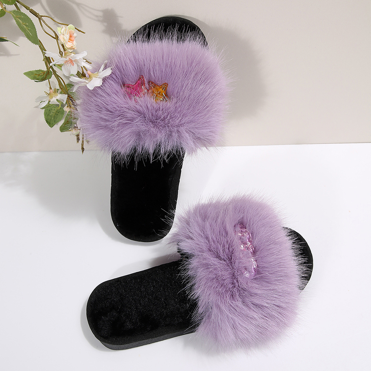 Comercio exterior transfronterizo amazon mujer dedo abierto engrosado zapatillas cómodas zapatillas suaves zapatillas de pelo de tamaño grande