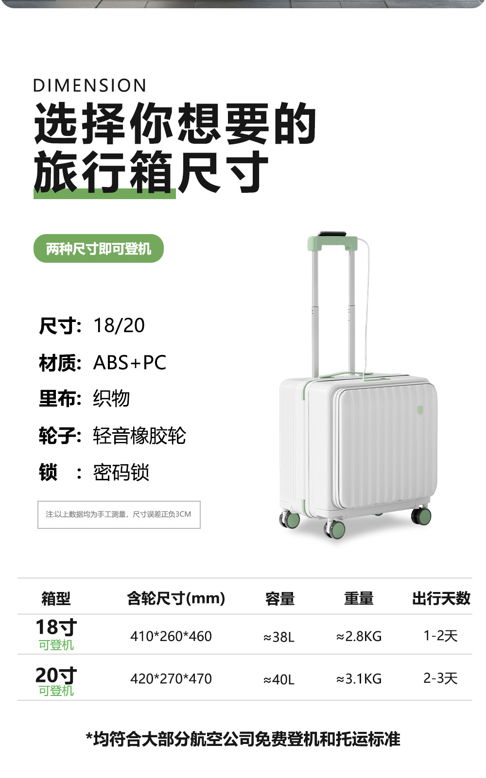 Maleta con apertura lateral para mujer, pequeña y ligera, equipaje de mano de 20 pulgadas, compartimento profundo, 18 pulgadas, aprobada para avión, candado de combinación, maleta con ruedas para viajes cortos para hombre.