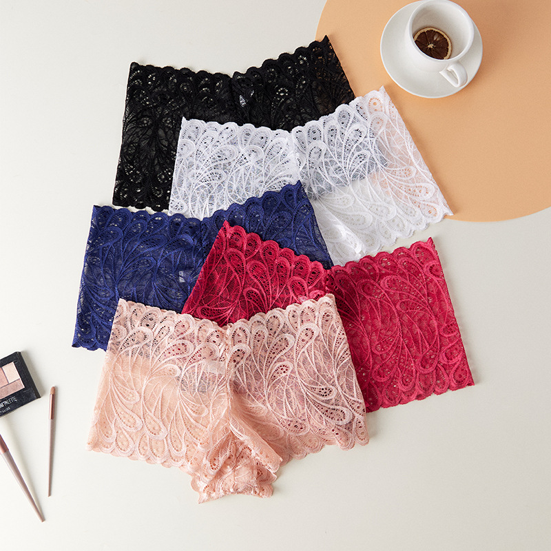 Pantalones de encaje sexy de mujer hueco encantador seductoras pantalones planos cómodos transpirables entrepierna de algodón de mujer