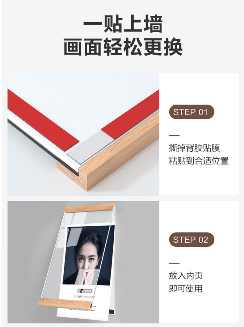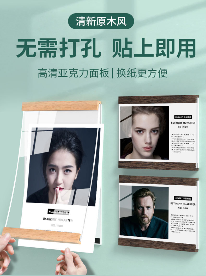 Introducción del maestro marco de pared A4 paneles de visualización magnéticos A3 carteles sin perforación marco de madera acrílica al por mayor