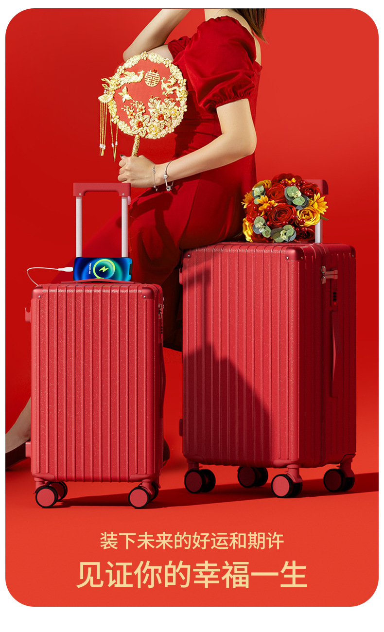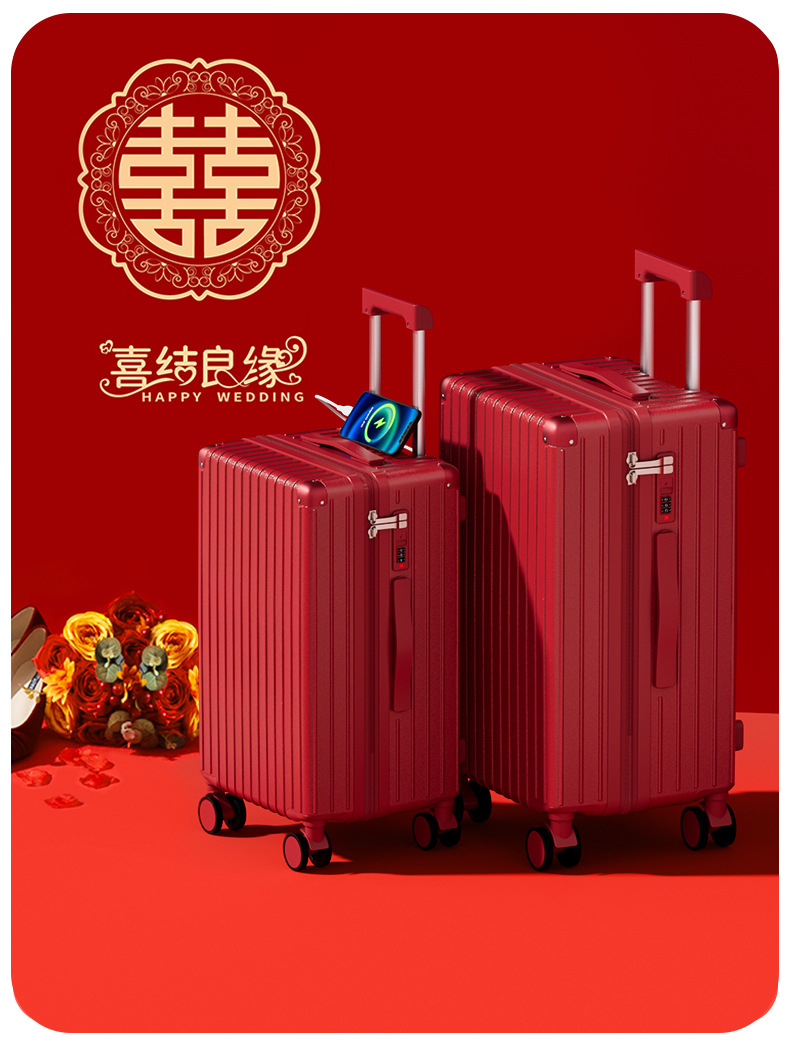 Maleta roja de bodas de 20 pulgadas, caja de tracción de bodas de gran capacidad, caja de contraseña de boda 28