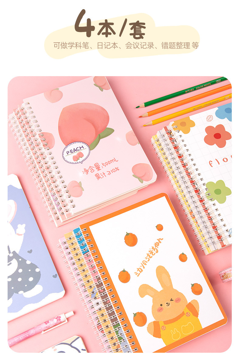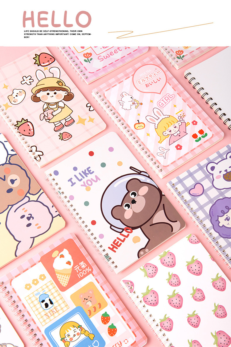 Cute dibujos animados A5 bobina cuaderno estudiante suministros escolares papelería de oficina cuaderno de alto aspecto al por mayor