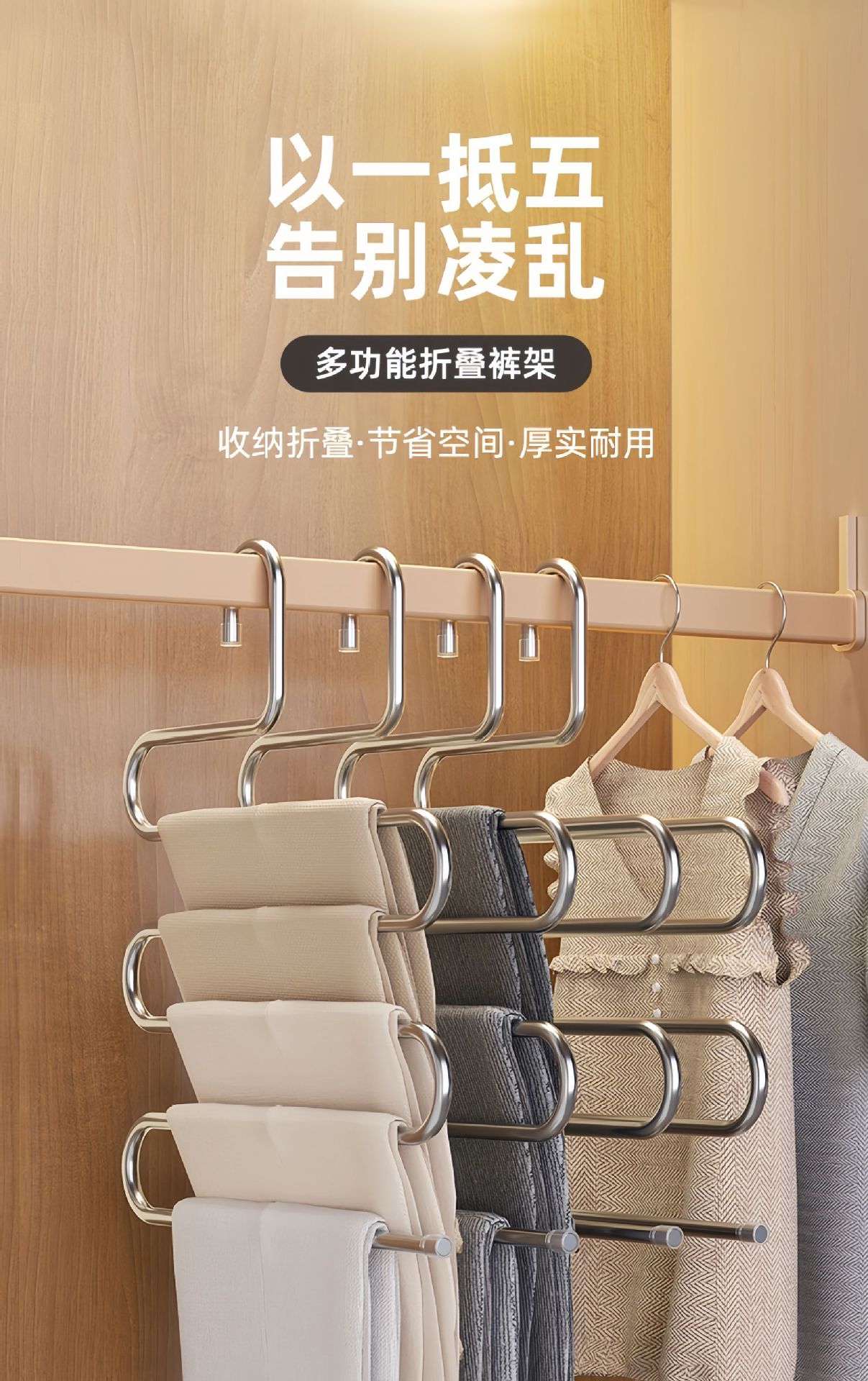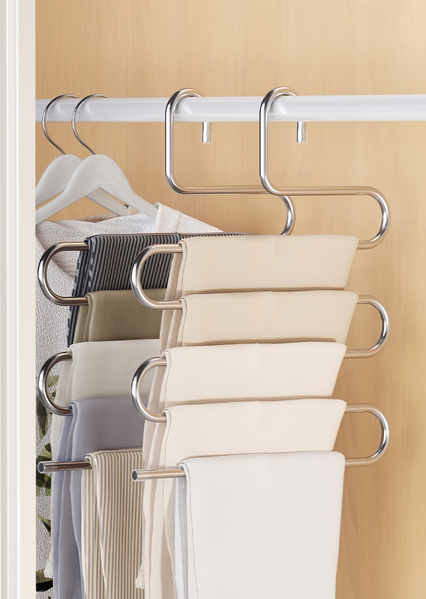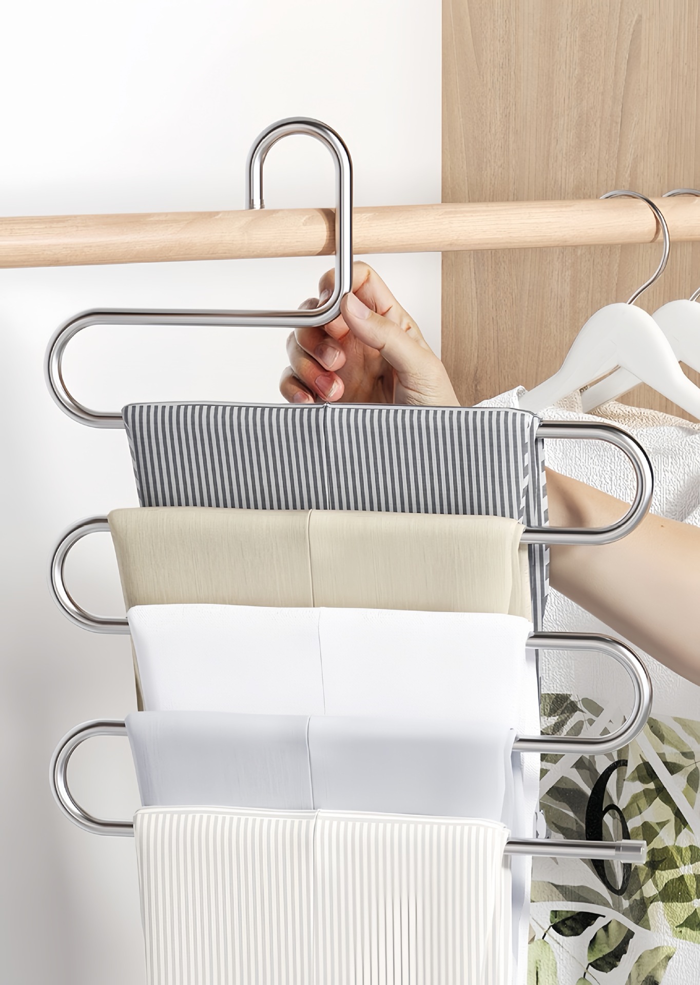Perchero multifuncional de acero inoxidable para pantalones, con forma de S, de 5 niveles, para guardar bufandas, de varias capas, simple.