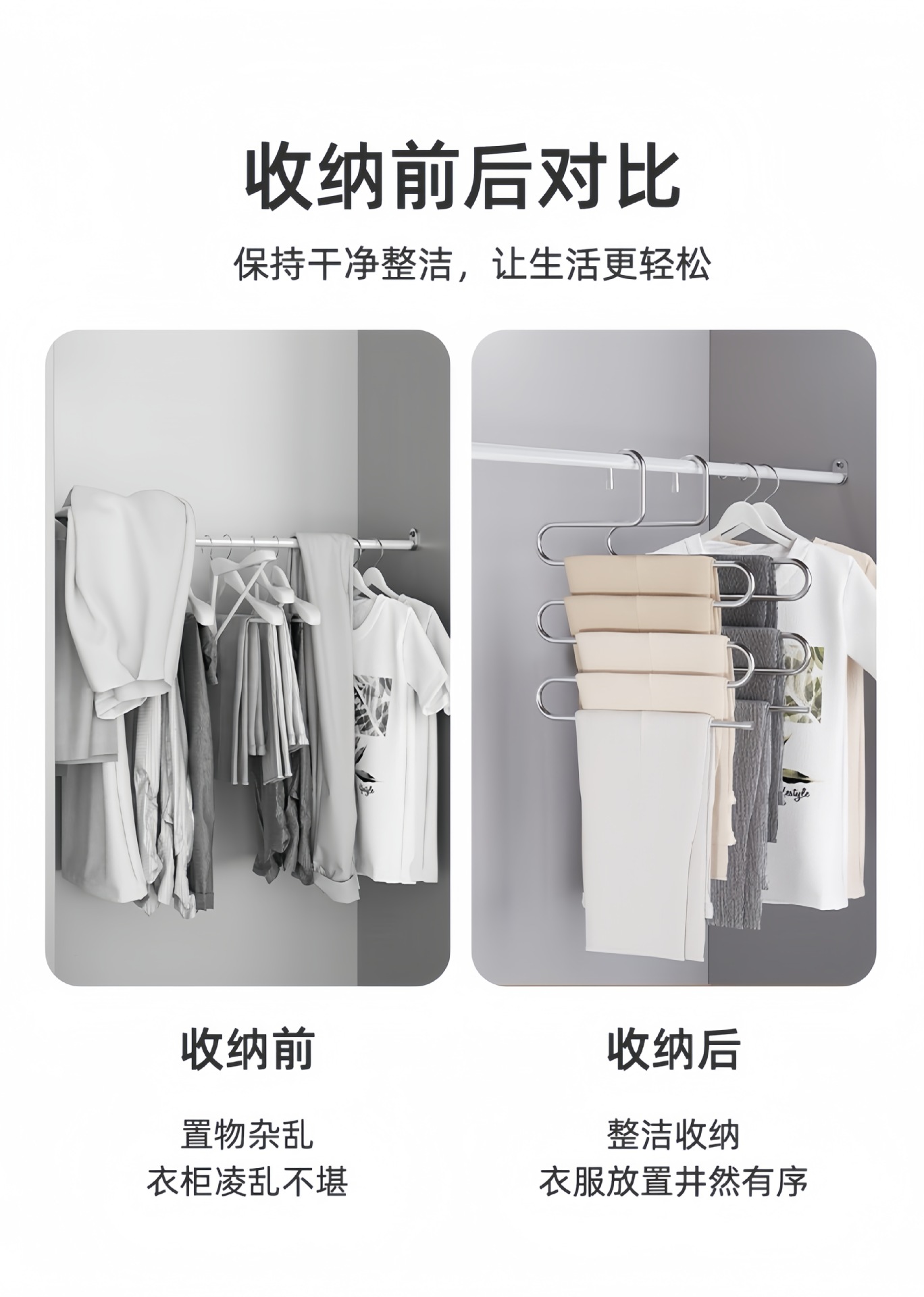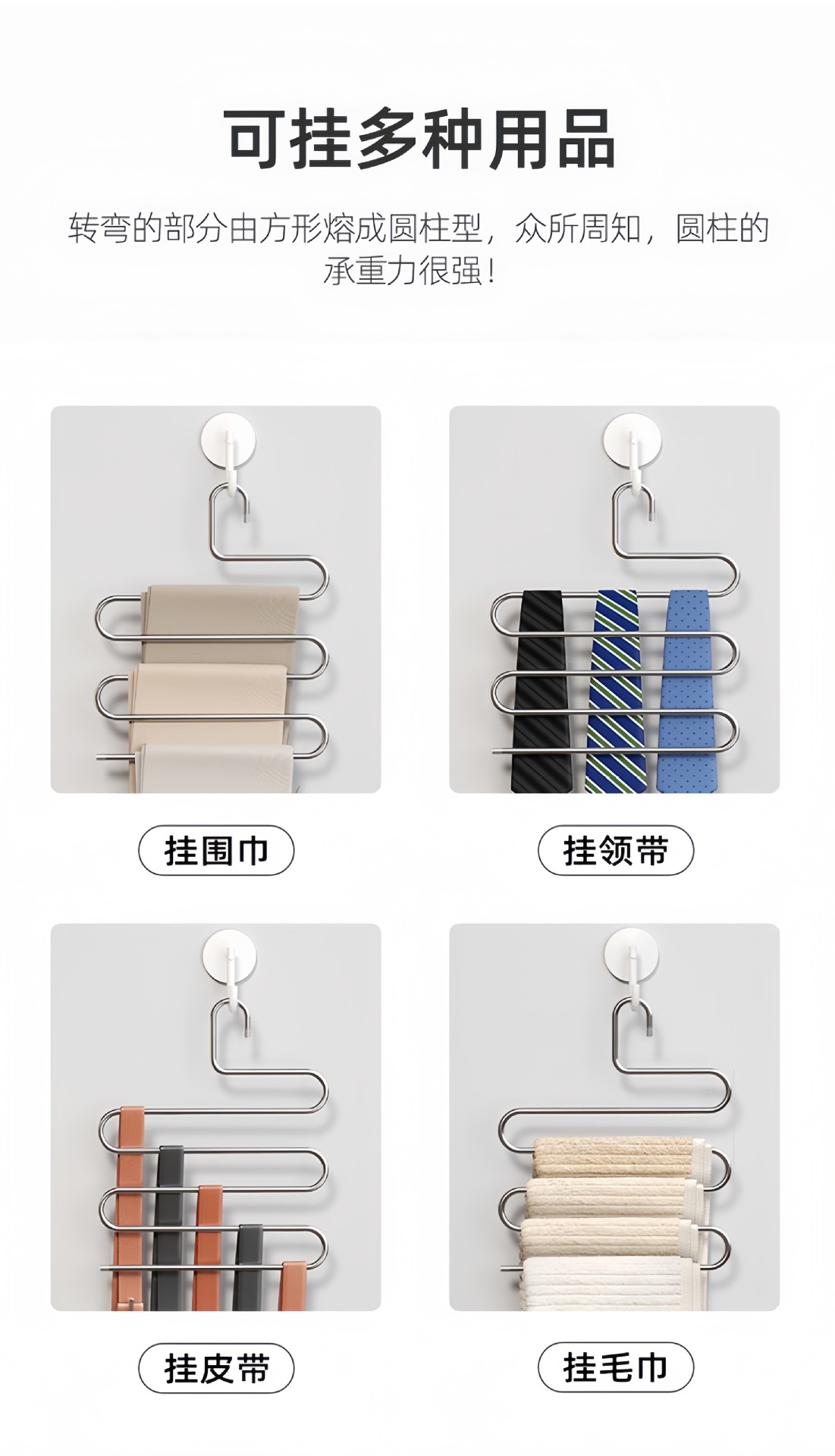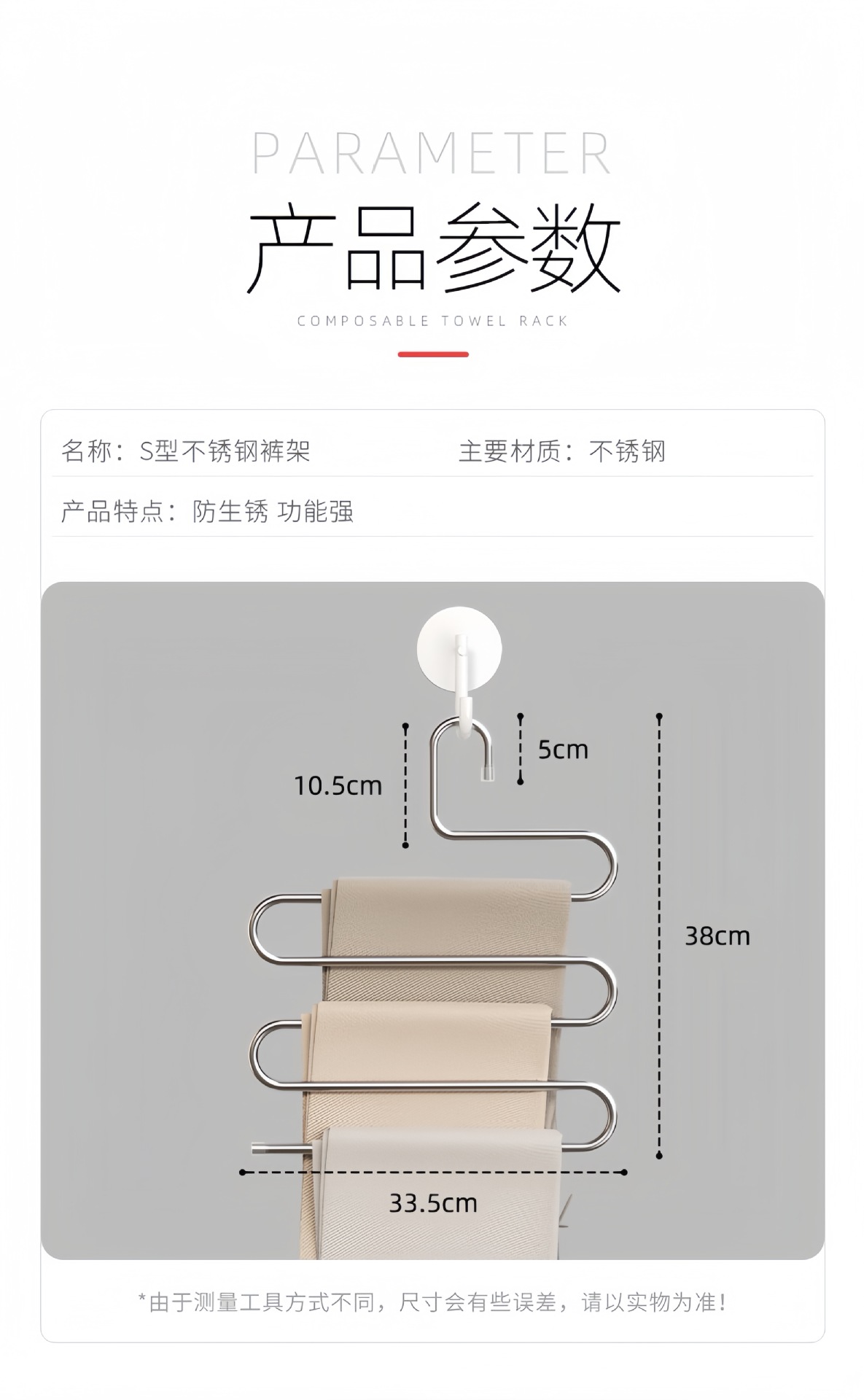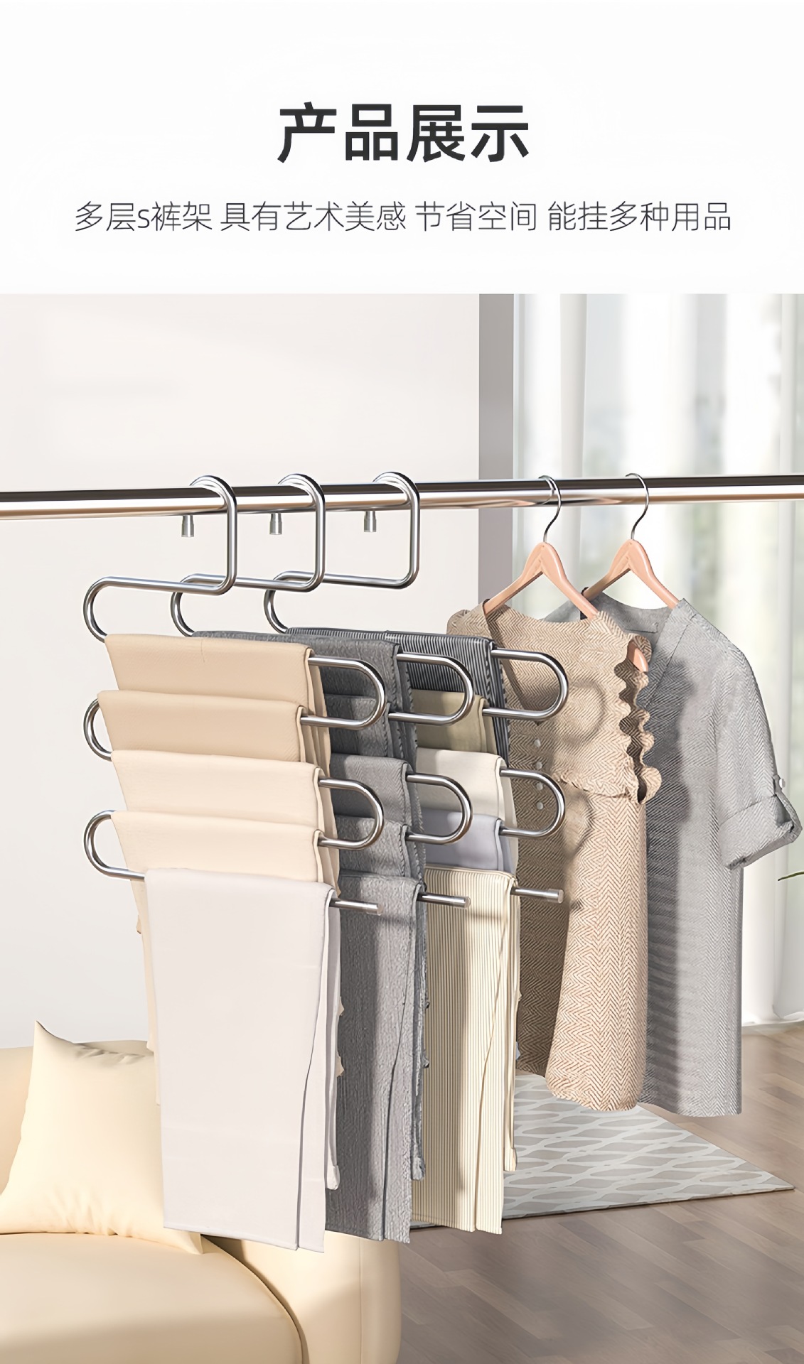 Perchero multifuncional de acero inoxidable para pantalones, con forma de S, de 5 niveles, para guardar bufandas, de varias capas, simple.
