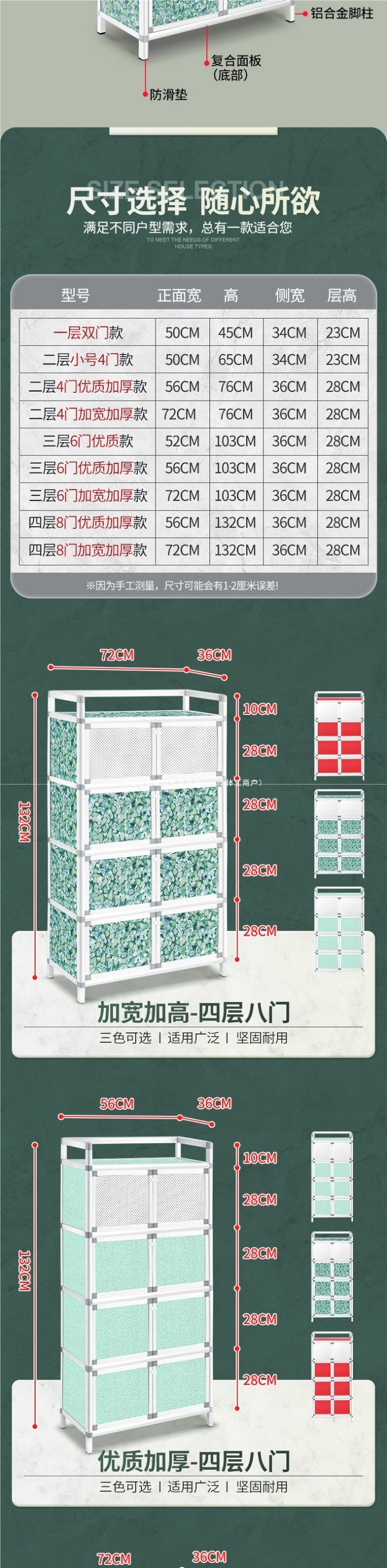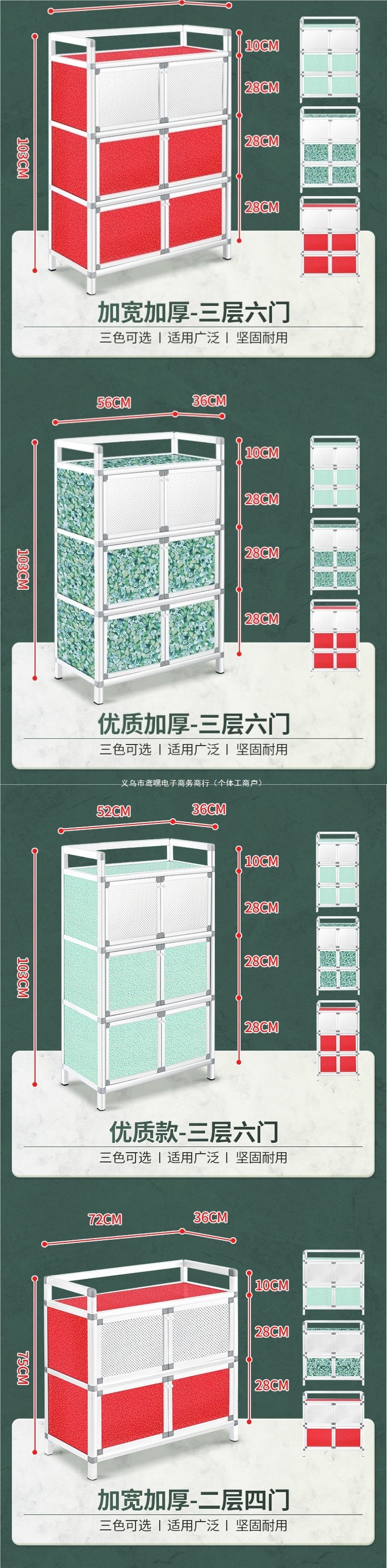 | Color | 1层2门酒红色50*33*45,一层2门石头色50*33*45,2层4门小号酒红色50*33*65,2层4门小号浅绿色50*33*65,2层4门小号石头色50*33*65,2层4门小号胡桃色50*33*65,2层4门小号原木色50*33*65,加宽2层4门红色56*35*76,加宽2层4门浅色56*35*76,加宽2层4门石色56*35*76,加宽2层4门胡桃56*35*76,加宽2层4门原木56*35*76,加宽2层4门酒红色72*35*76,加宽2层4门浅绿色72*35*76,加宽2层4门石头色72*35*76,加宽2层4门胡桃色72*35*76,加宽2层4门原木色72*35*76,3层6门酒红色52*35*104,3层6门浅绿色52*35*104,3层6门石头色52*35*104,3层6门胡桃色52*35*104,3层6门原木色52*35*104,3层6门酒红色56*35*104,3层6门浅绿色56*35*104,3层6门石头色56*35*104,3层6门胡桃色56*35*104,3层6门原木色56*35*104,3层6门色56*35*104,加宽3层6门酒红色72*35*104,加宽3层6门浅绿色72*35*104,加宽3层6门石头色72*35*104,加宽3层6门胡桃色72*35*104,加宽3层6门原木色72*35*104,加宽3层6门色72*35*104,4层8门酒红色56*35*132,4层8门浅绿色56*35*132,4层8门石头色56*35*132,4层8门胡桃色56*35*132,4层8门原木色56*35*132,加宽4层8门酒红色72*35*132,加宽4层8门浅绿色72*35*132,加宽4层8门石头色72*35*132,加宽4层8门胡桃色72*35*132,加宽4层8门原木色72*35*132 |