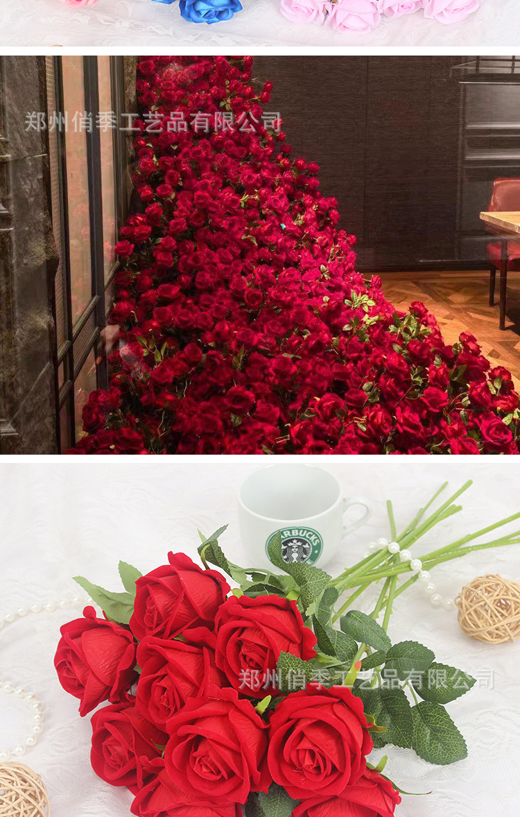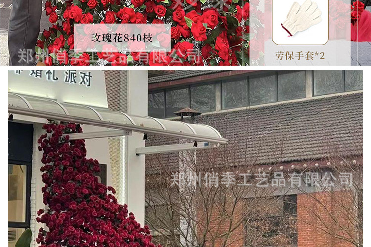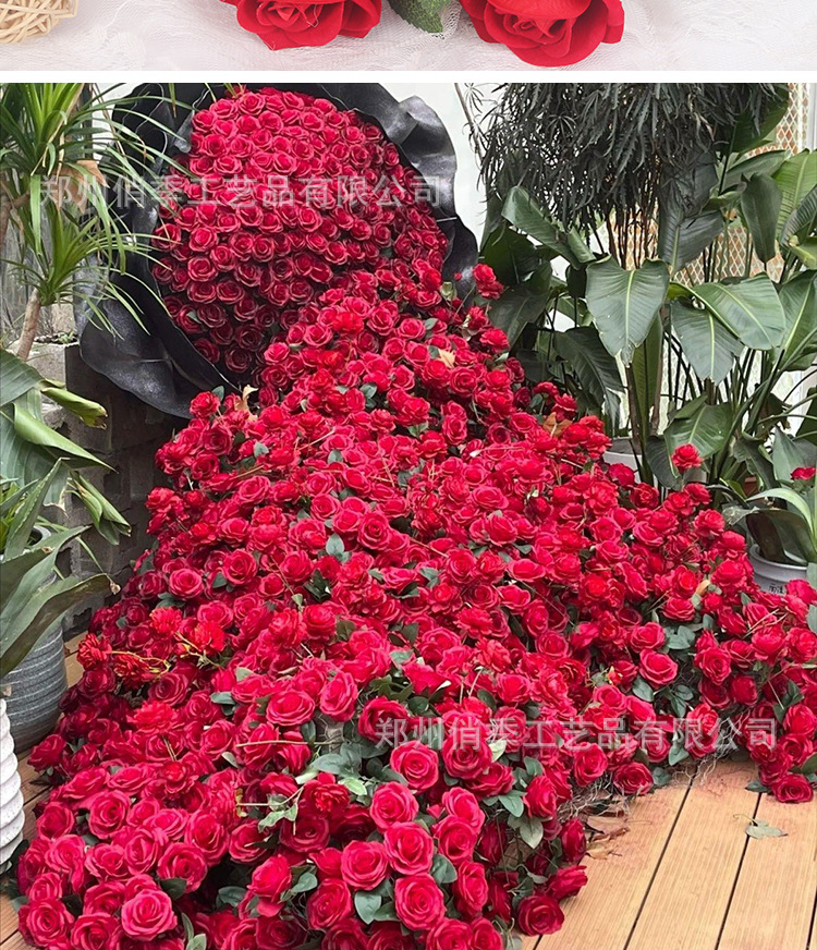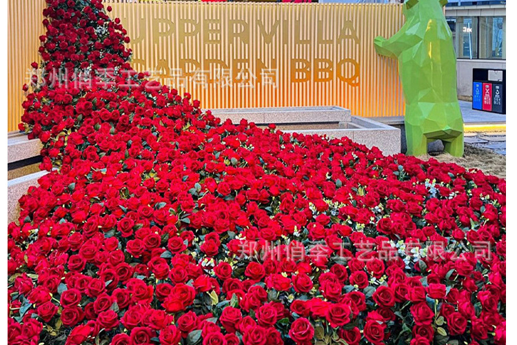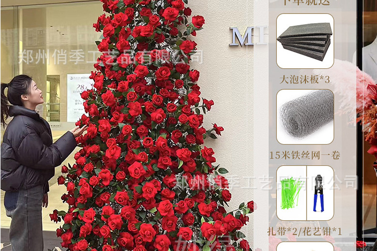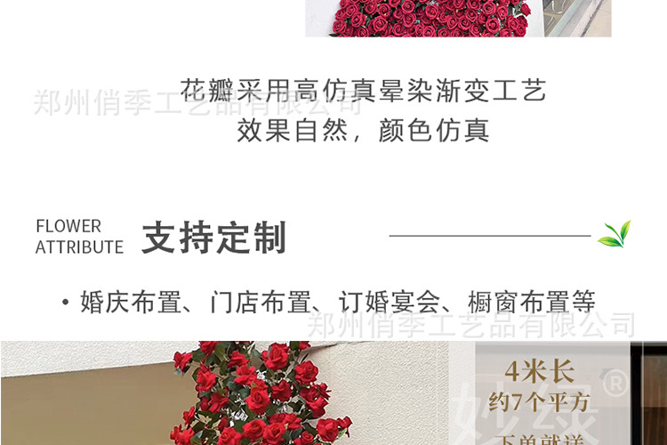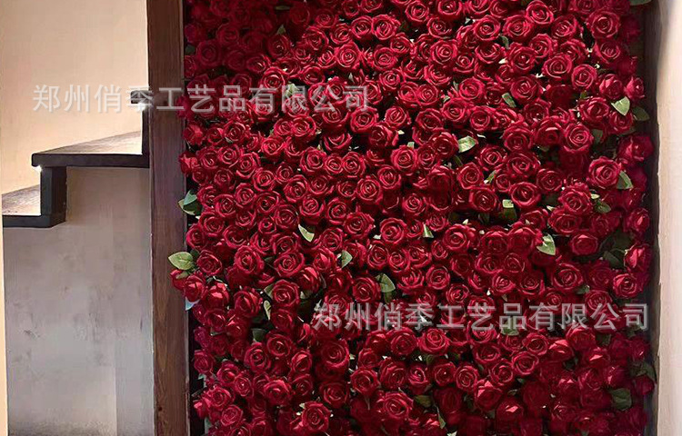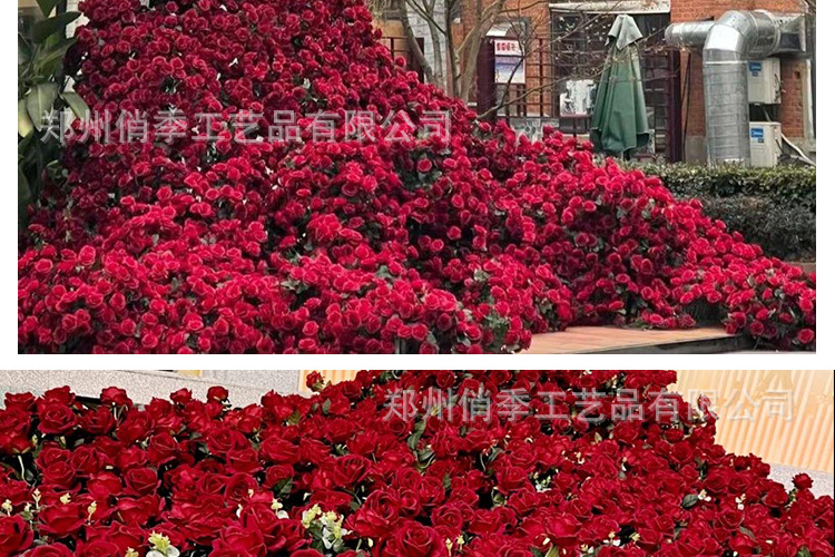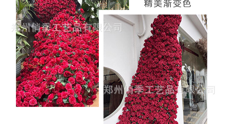 Franela de flores artificiales Cascada de rosas Decoración de flores falsas Pared de fondo Red de celebridades perforada Decoración de rosas Centro comercial Pared de cártamo