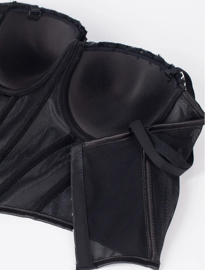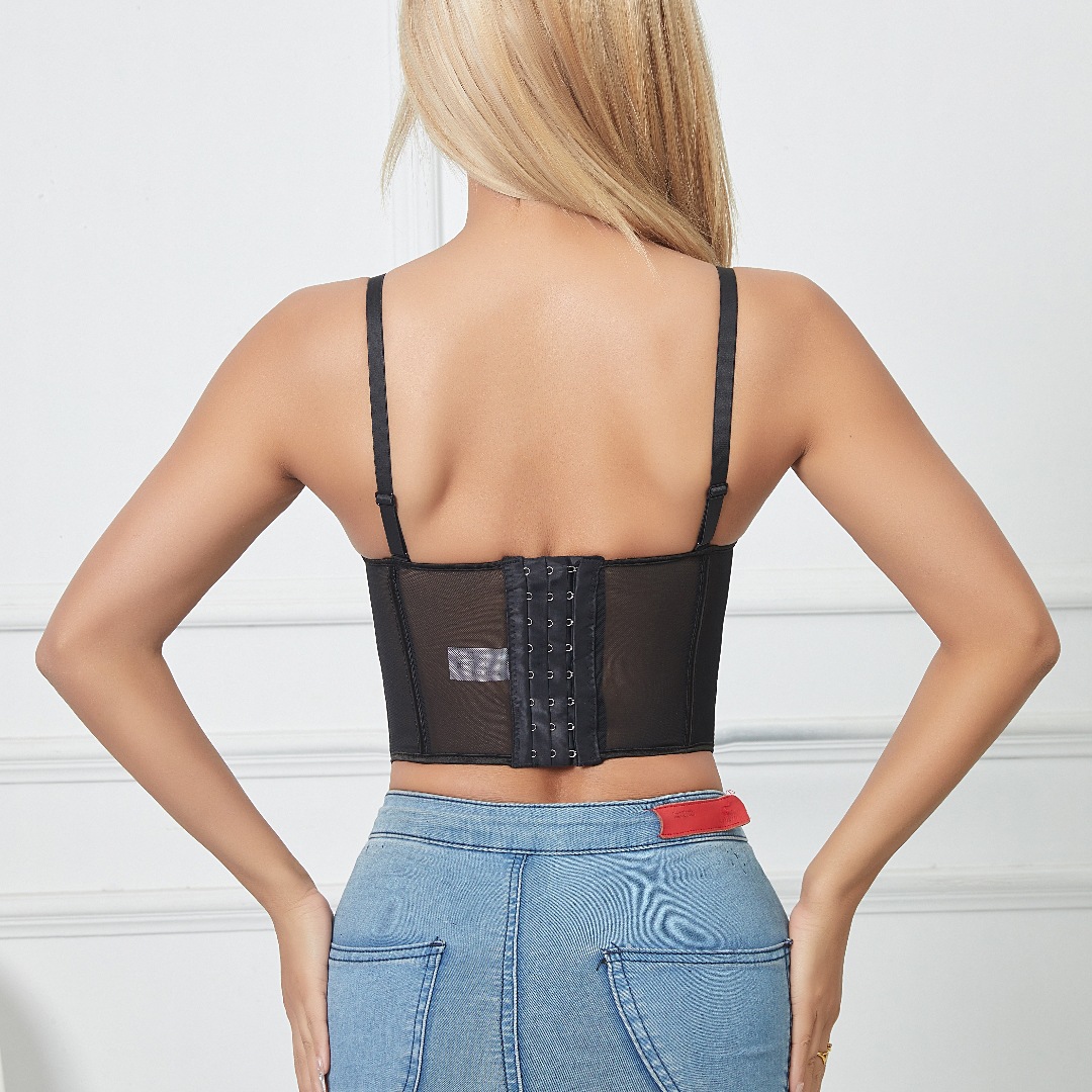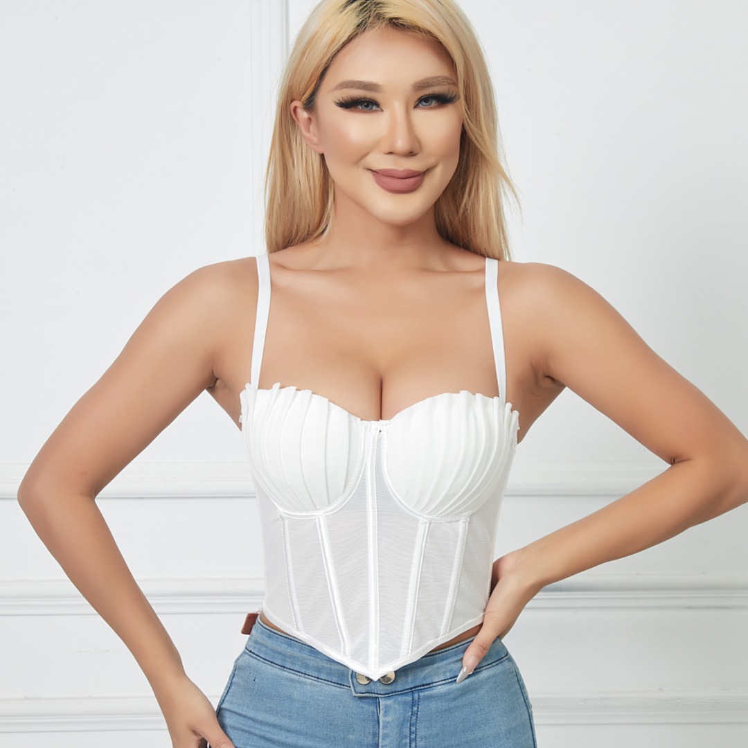 Camisola de estilo europeo y americano con malla y diseño de espina de pescado, se puede usar como capa interior o exterior, top ajustado estilo corsé que realza la figura.