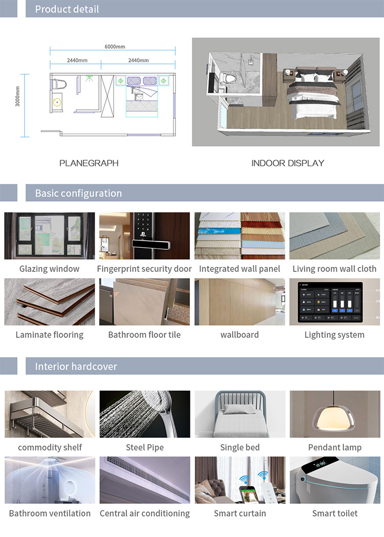 Casa móvil integrada de contenedores casa integrada de tablero móvil casa de acero ligero alojamiento móvil oficina temporal