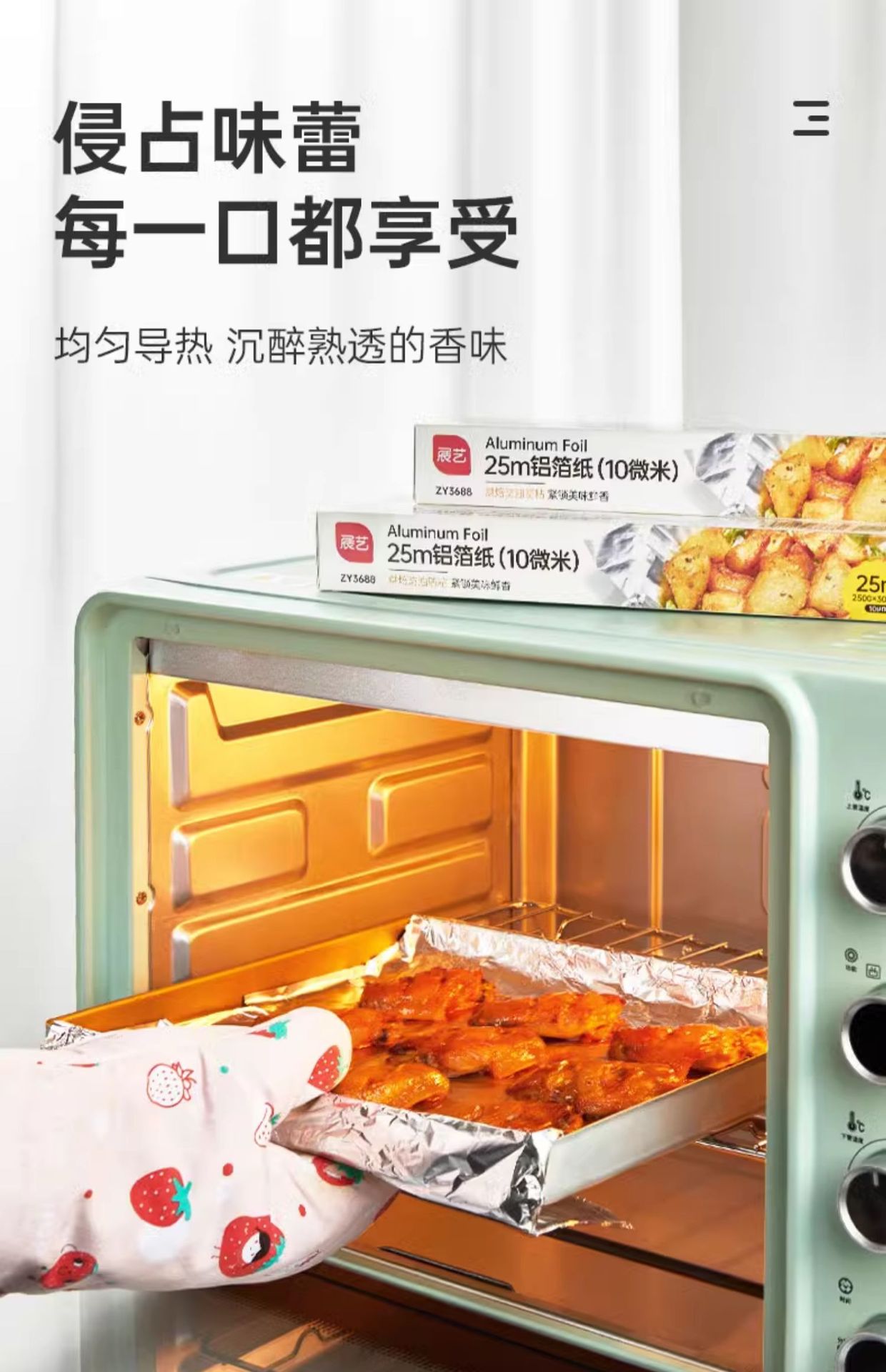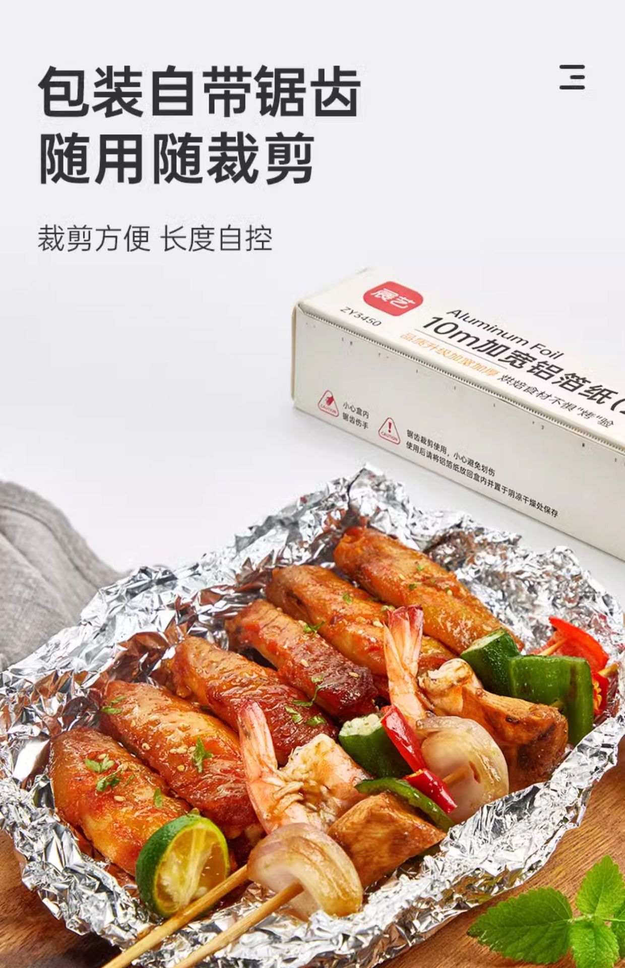 Papel de estaño de exhibición de 20m hogar horneado aire freidora especial de aluminio papel de estaño de grado alimenticio horneado papel de aceite de parrilla