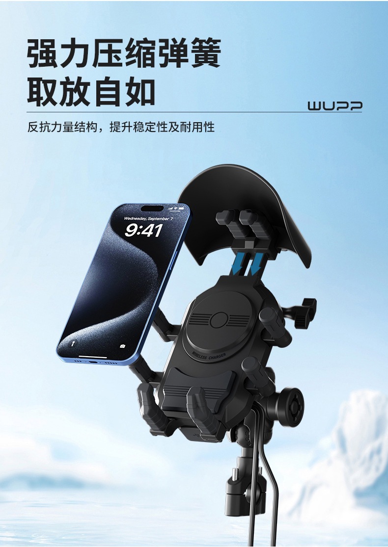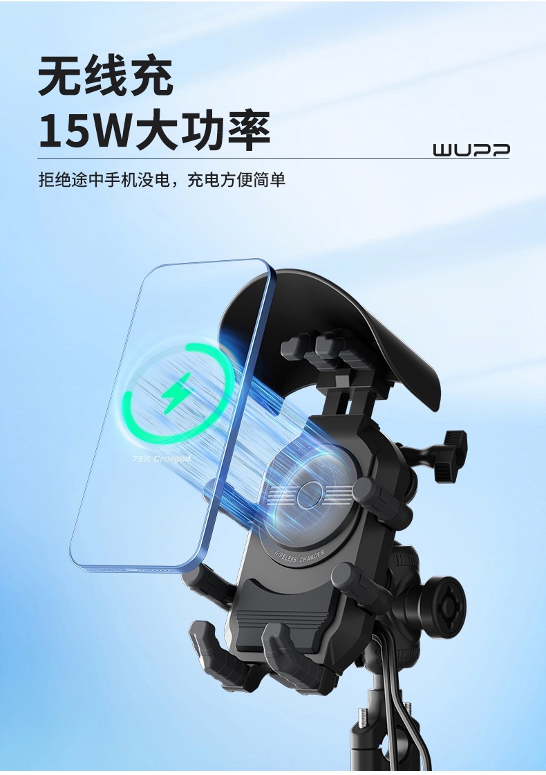 Motocicleta Modaton inalámbrica carga soporte de teléfono móvil amortiguador soporte de cámara de motocicleta doble carga rápida para llevar