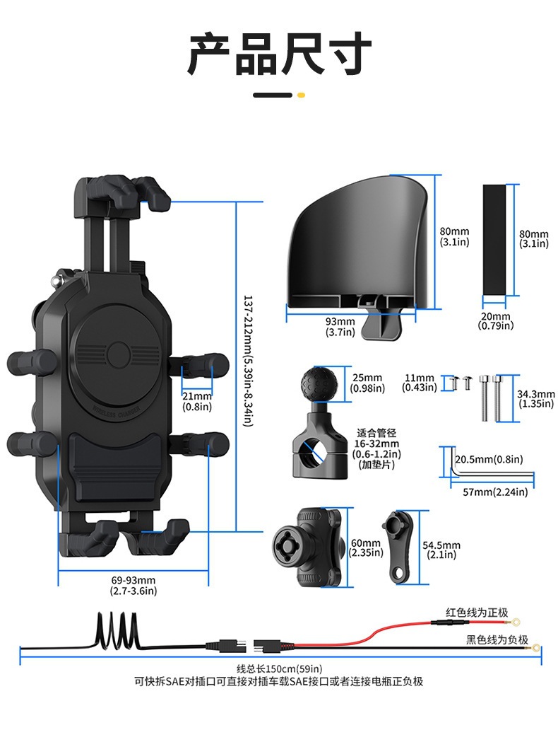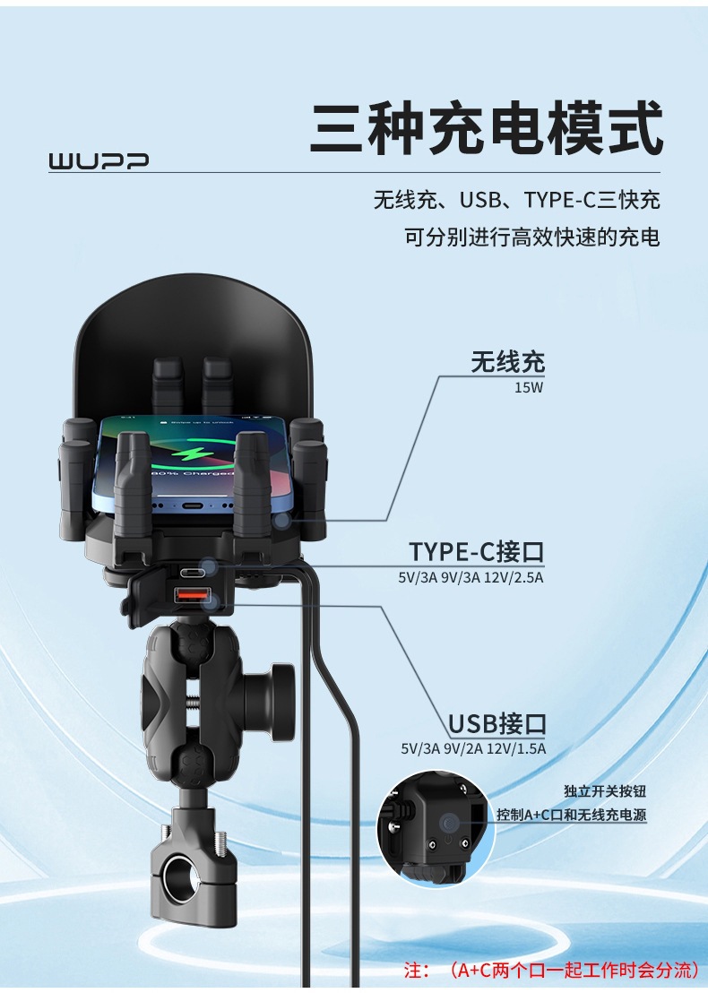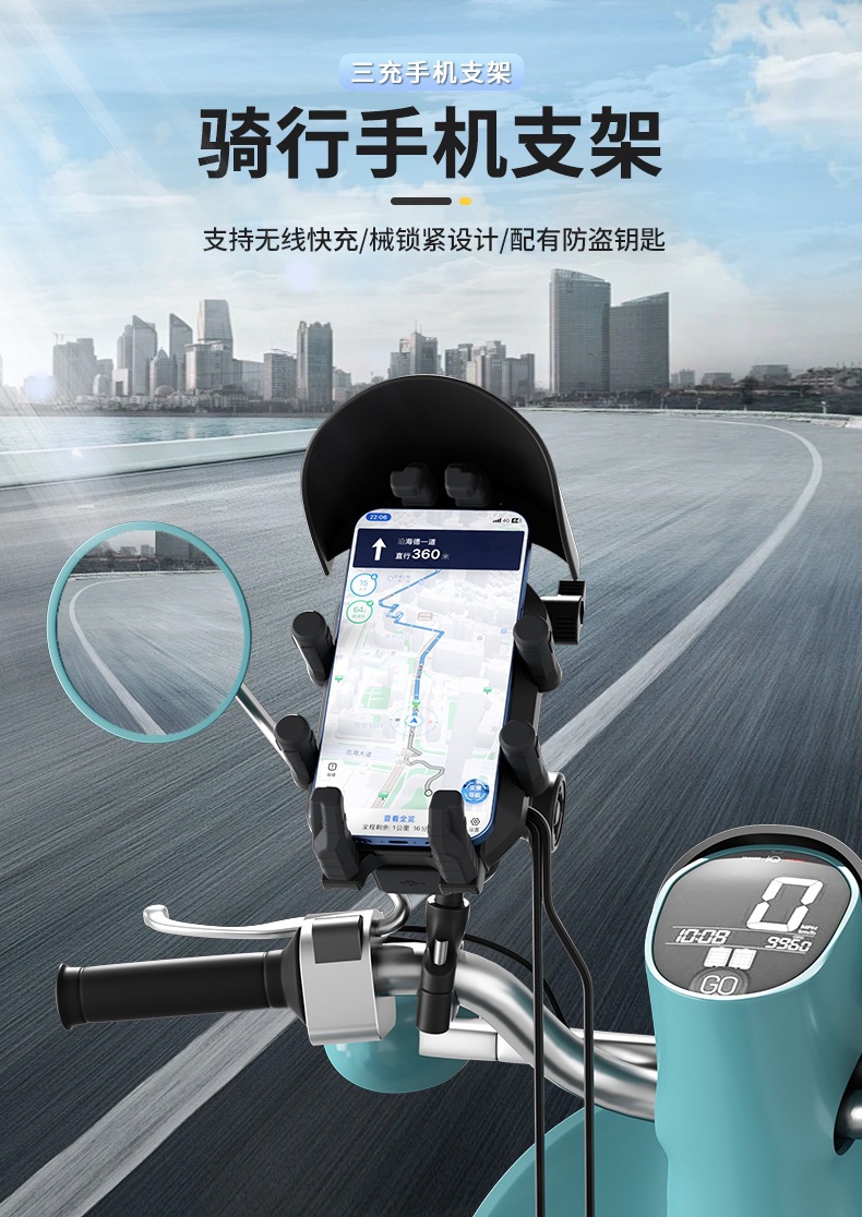 | Especificaciones | Manillar recargable 3 en 1 con cargador inalámbrico de 15W A + C, espejo retrovisor recargable 3 en 1 con cargador inalámbrico de 15W A + C |