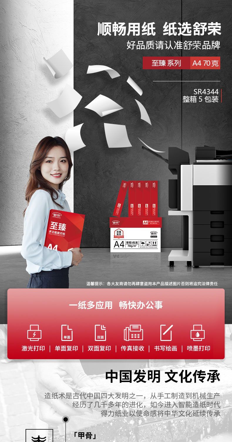 Shu Rong a4 papel de impresión, papel de copia, caja completa de papel a4 papel blanco, material de impresión de copia, papel de oficina, papel de borrador al por mayor