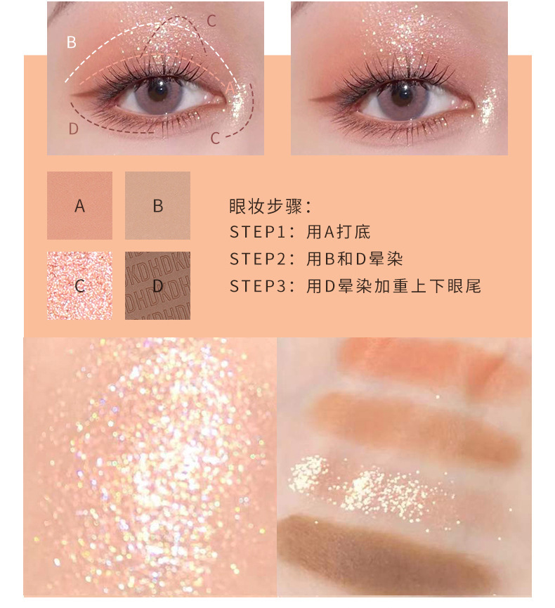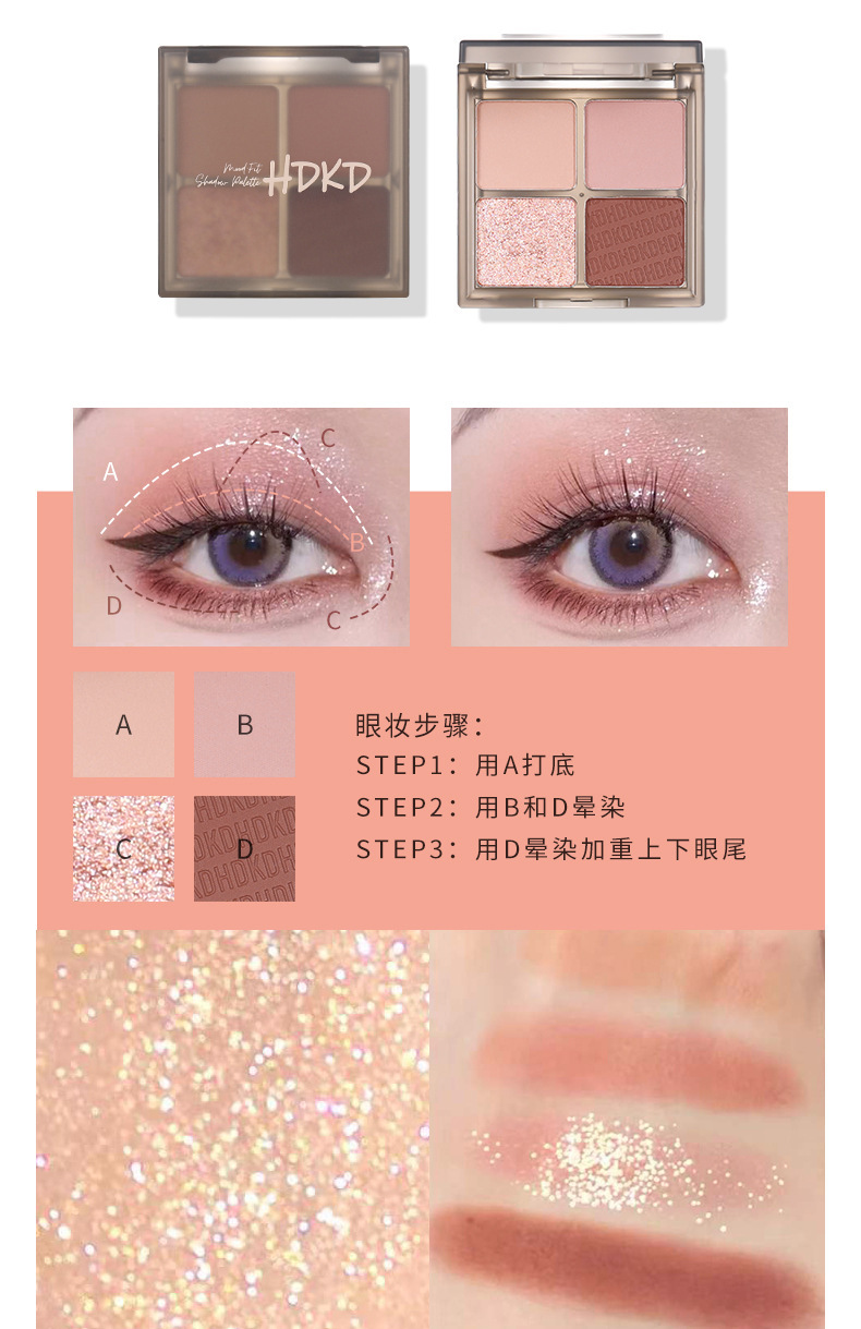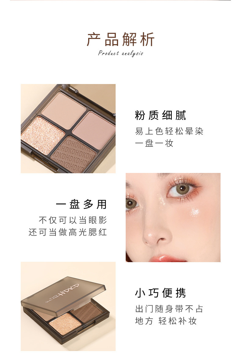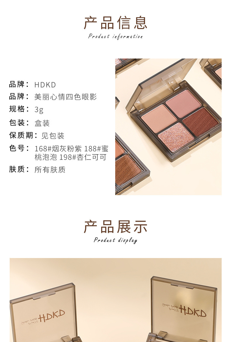 HDKD cuatro colores de sombra de ojos plate mate perlada tierra impermeable maquillaje diario ins estudiantes baratos 2023 nuevo