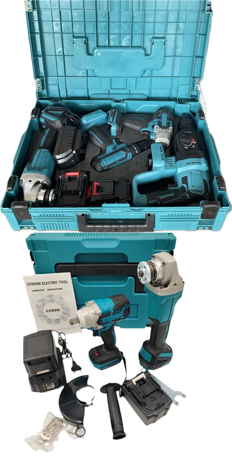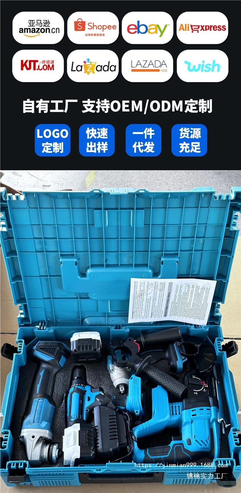 Herramientas de batería de litio transfronterizas, herramientas multifuncionales de tres y cuatro piezas, talleres de producción en el sitio, herramientas eléctricas, juegos de múltiples piezas