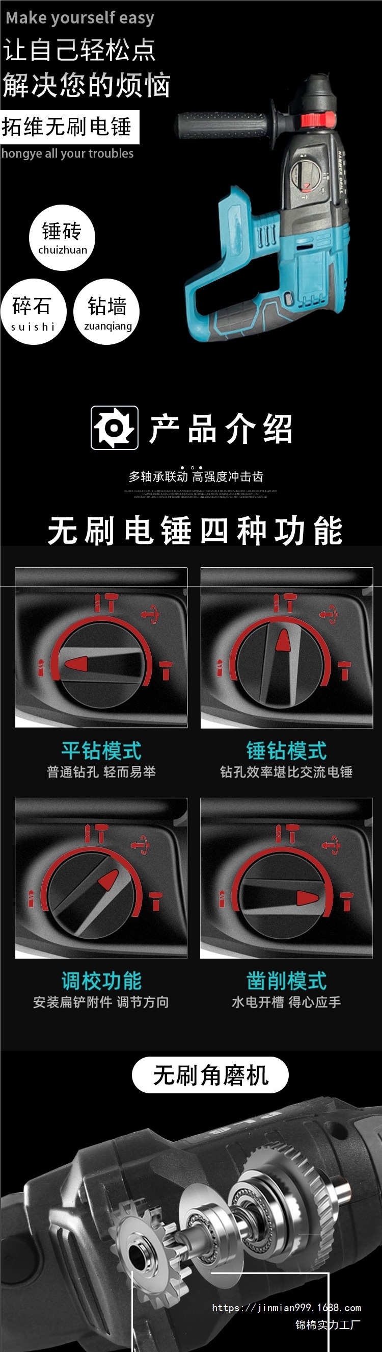 Martillo eléctrico, llave eléctrica, taladro eléctrico, amoladora angular, máquina desnuda de cuatro piezas (embalaje en caja de plástico)