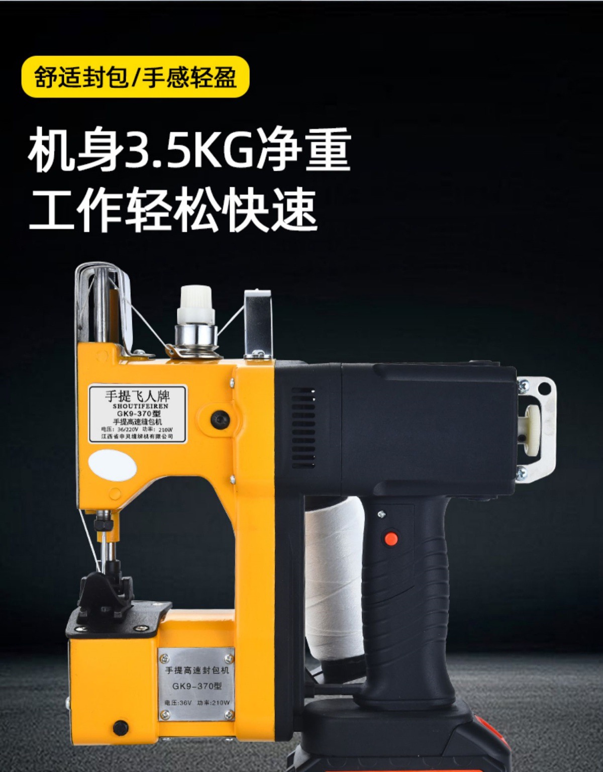 Máquina de coser de bolsa de mano Flying Man bolsa de tejido sellado empaque de mano pequeña máquina de envasado de batería de litio carga inalámbrica