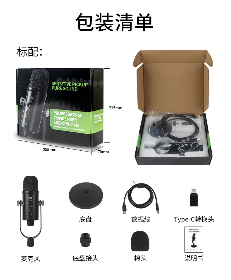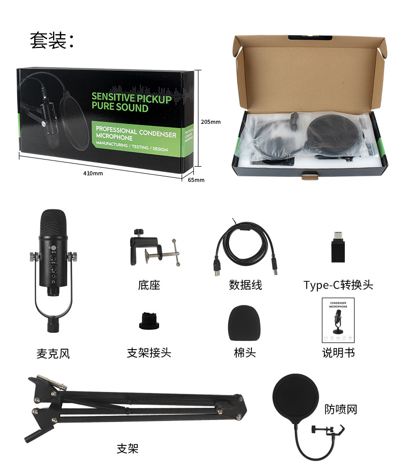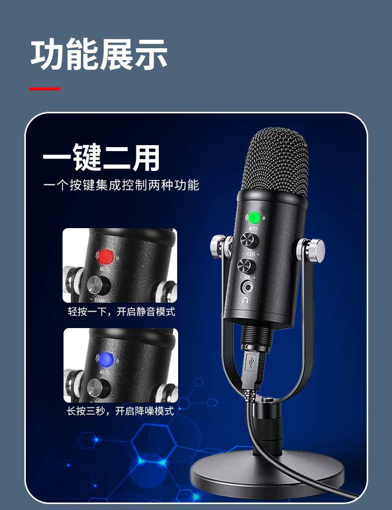 micrófono condensador USB alta definición reducción de ruido doblaje audiolibo equipo de grabación de audio novelas transmisión oral teléfono móvil computadora micrófono