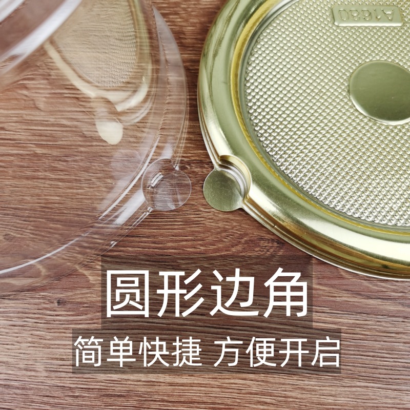 Pastel de mousse desechable A1680 oro 5 pulgadas de alta cubierta West dot hornada caja redonda mano lágrima pan caja de embalaje transparente