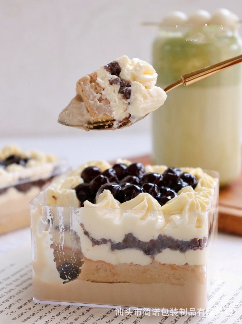 Caja de tiramisú PS embalaje caja dura con tapa 450ml almacenamiento cuadrado transparente galleta mousse caja de la torta