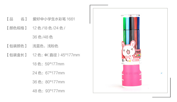 | Color | 1 barril de acuarela de 12 colores (patrón de embalaje aleatorio), 1 barril de acuarela de 18 colores (patrón de embalaje aleatorio), 1 barril de acuarela de 24 colores (patrón de embalaje aleatorio), 1 barril de acuarela de 36 colores (patrón de embalaje aleatorio) |