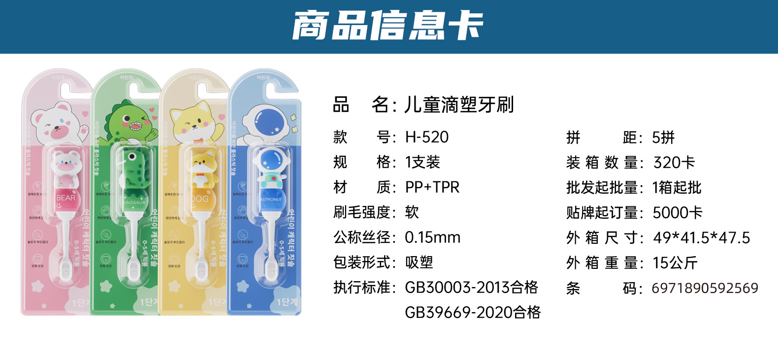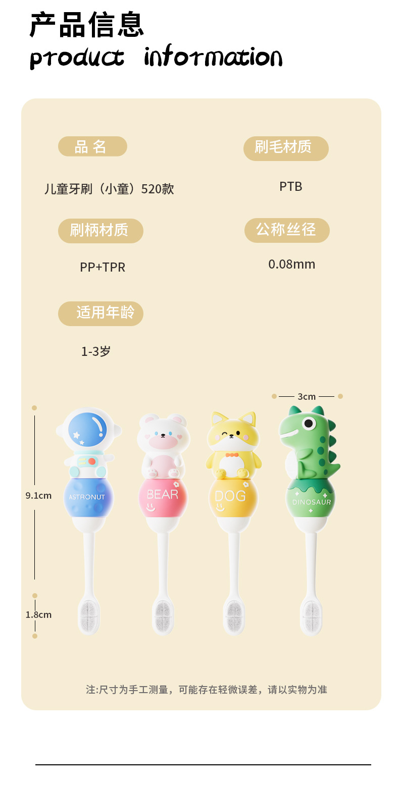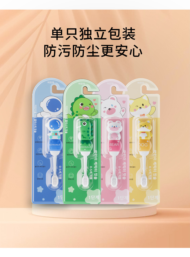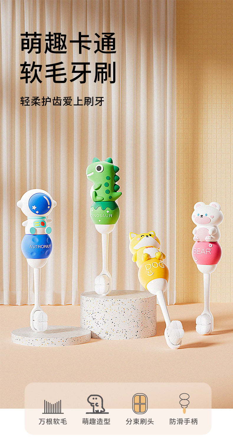 Cepillo de dientes para niños, cepillo de dientes para bebés y niños pequeños, dibujos animados de cabello, cabeza corta, embalaje independiente, fábrica al por mayor