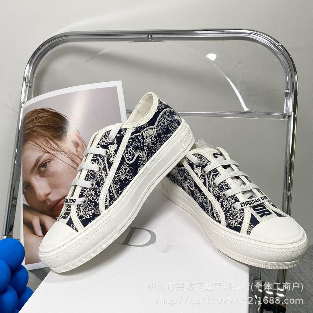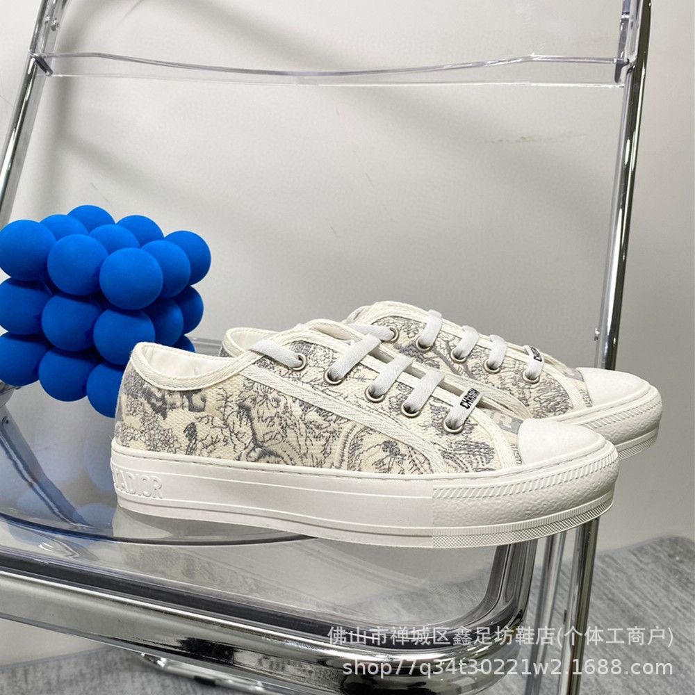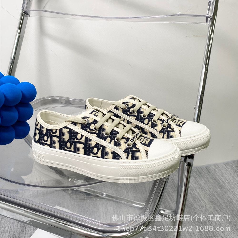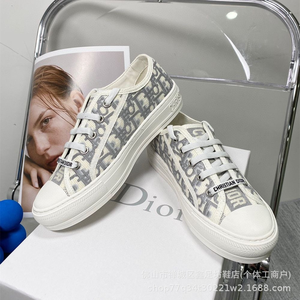 Hong Kong retro primavera y verano nuevo D casa gruesa zapatos de lona bordados 2025 letras correa de zapatos de plantilla universal para mujeres