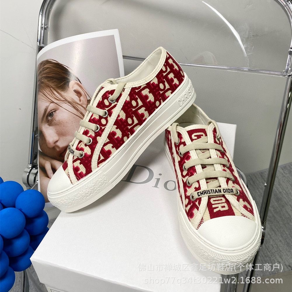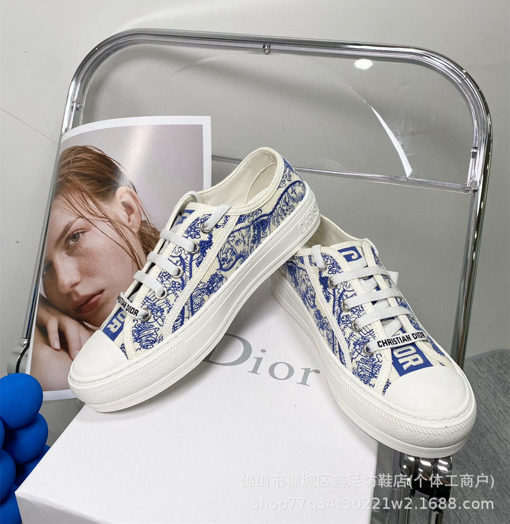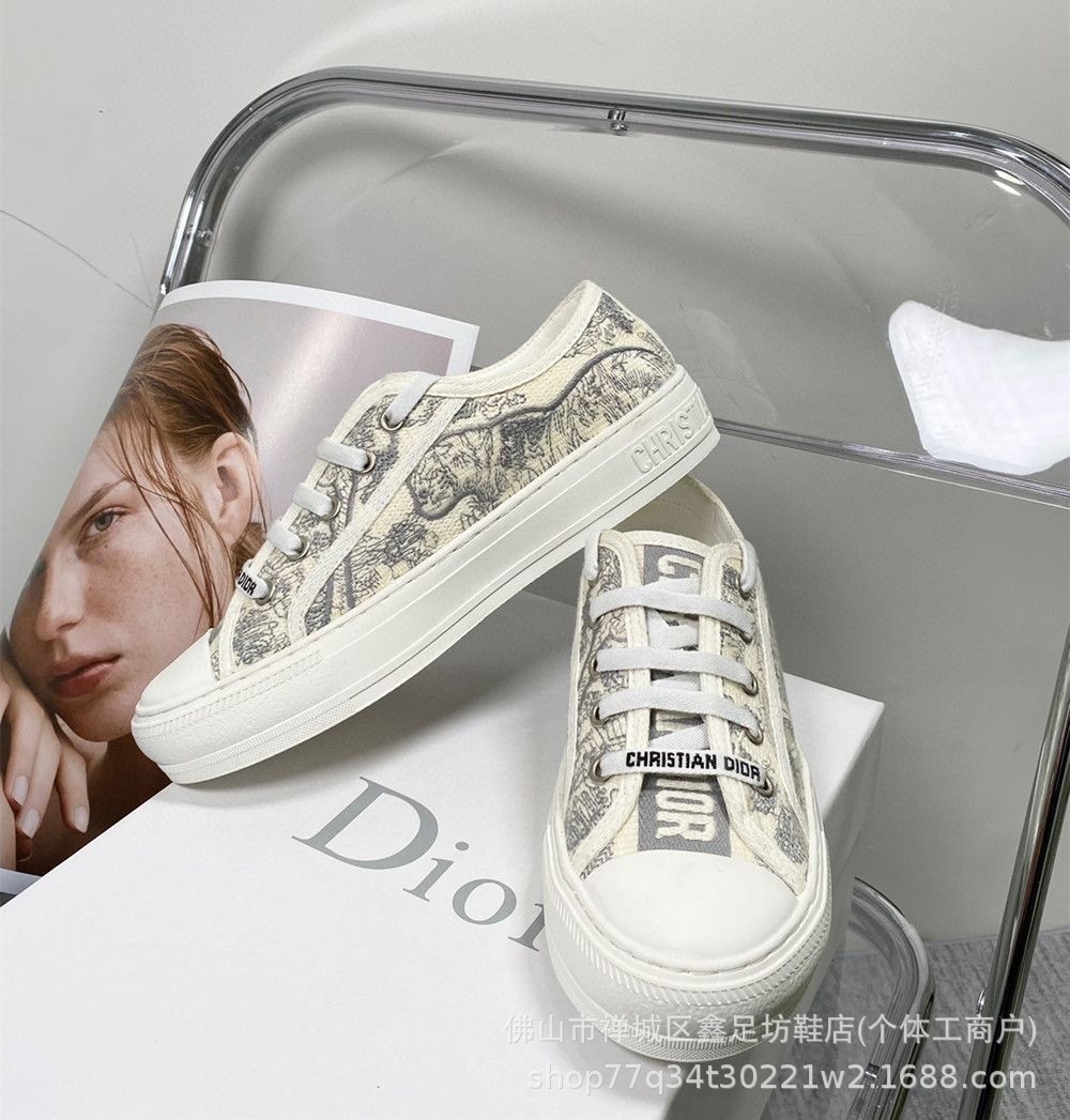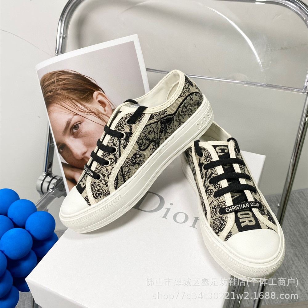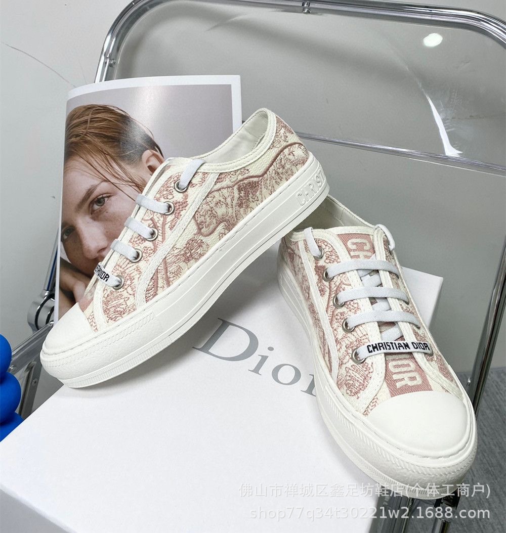 Hong Kong retro primavera y verano nuevo D casa gruesa zapatos de lona bordados 2025 letras correa de zapatos de plantilla universal para mujeres