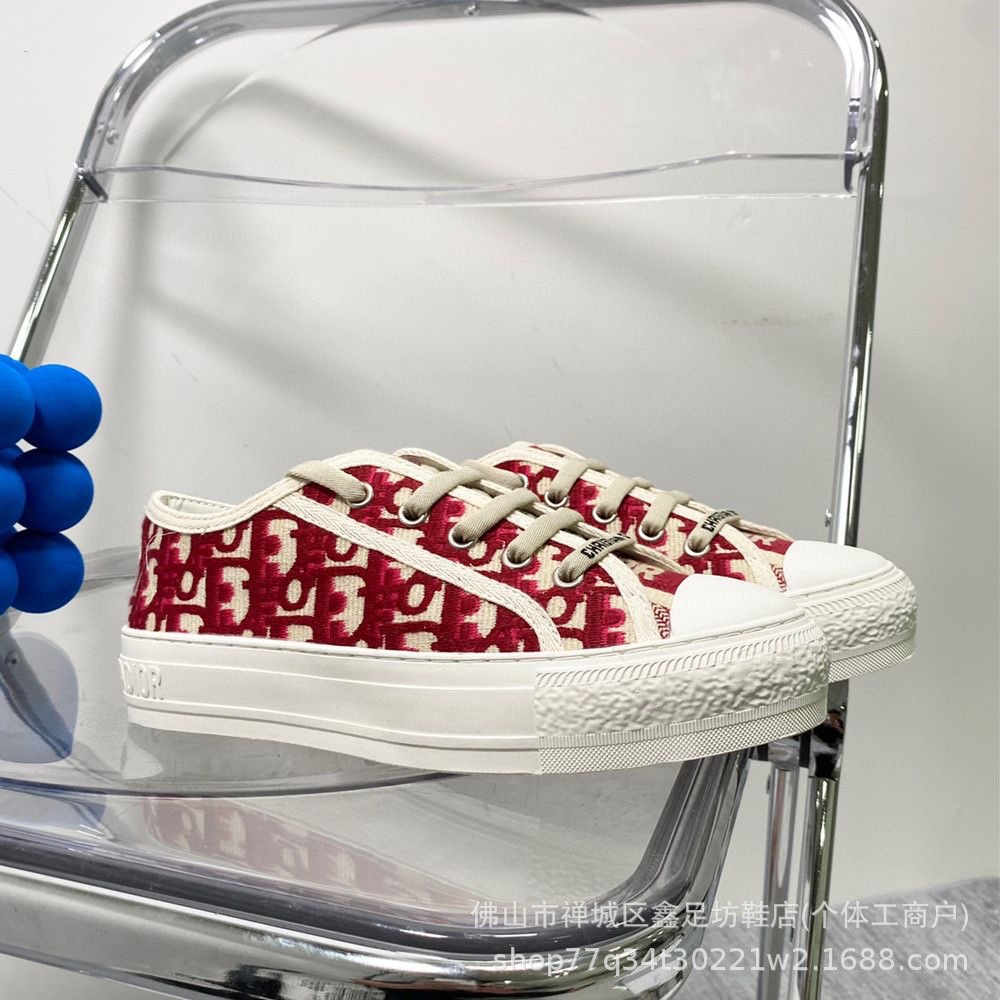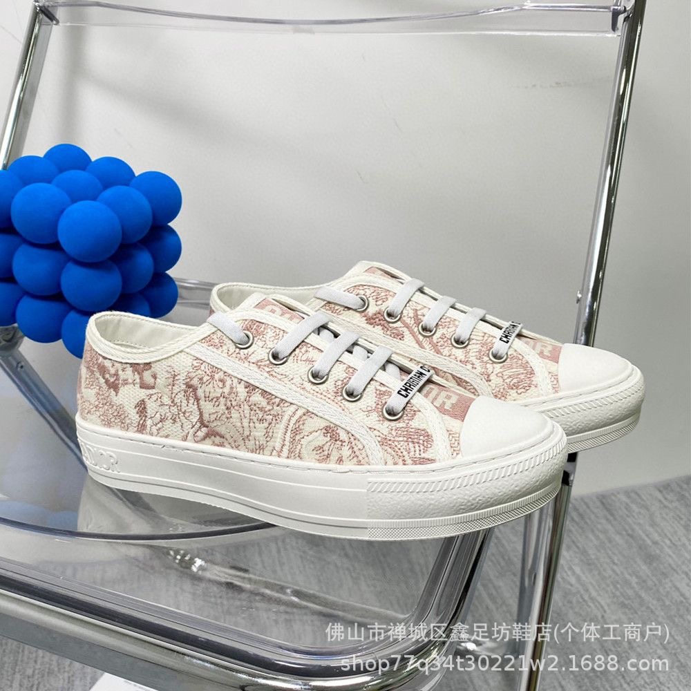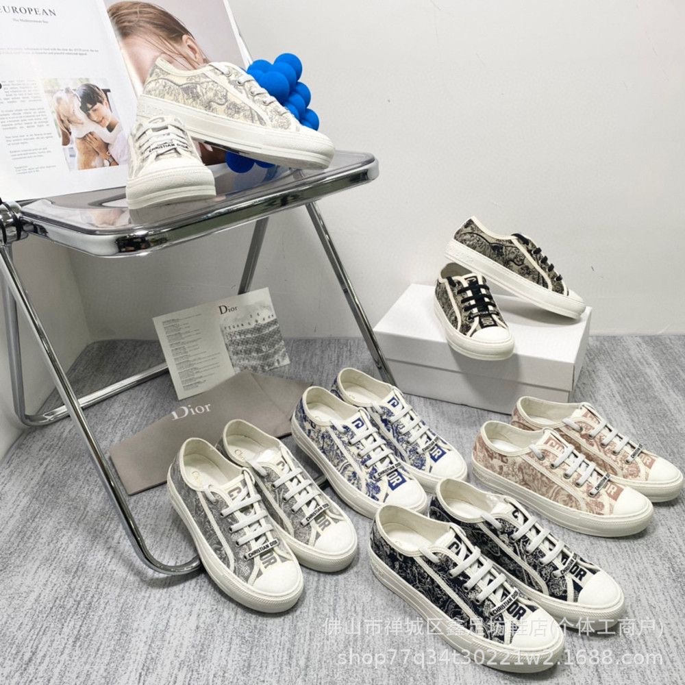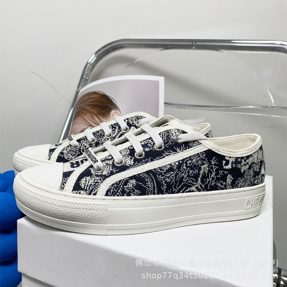 Hong Kong retro primavera y verano nuevo D casa gruesa zapatos de lona bordados 2025 letras correa de zapatos de plantilla universal para mujeres