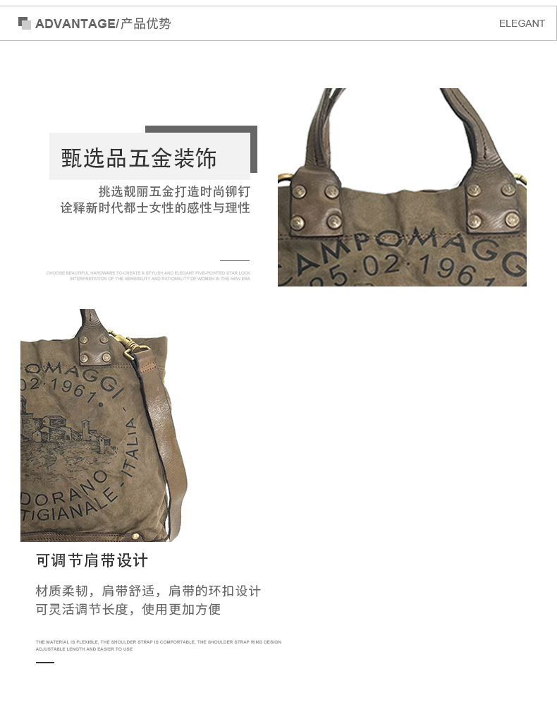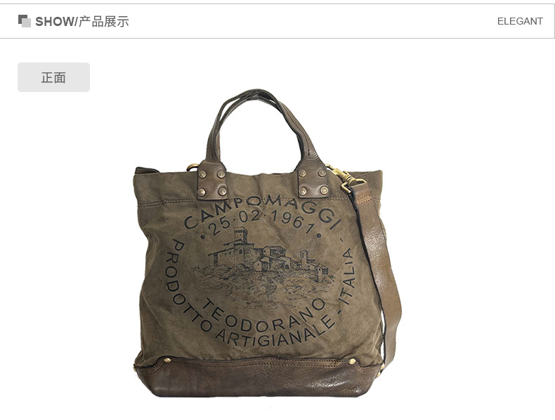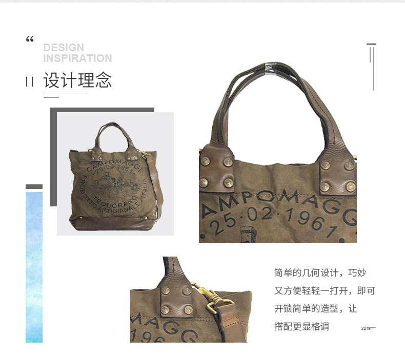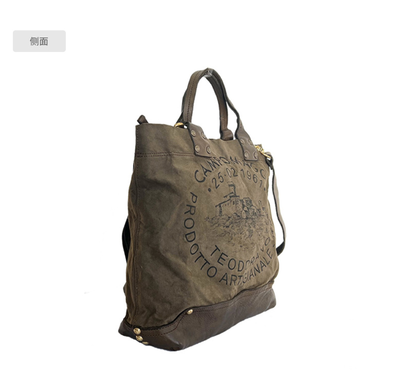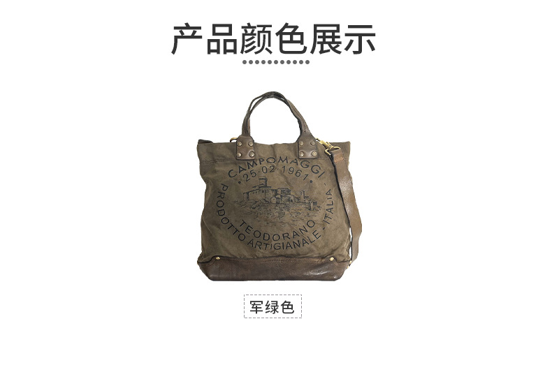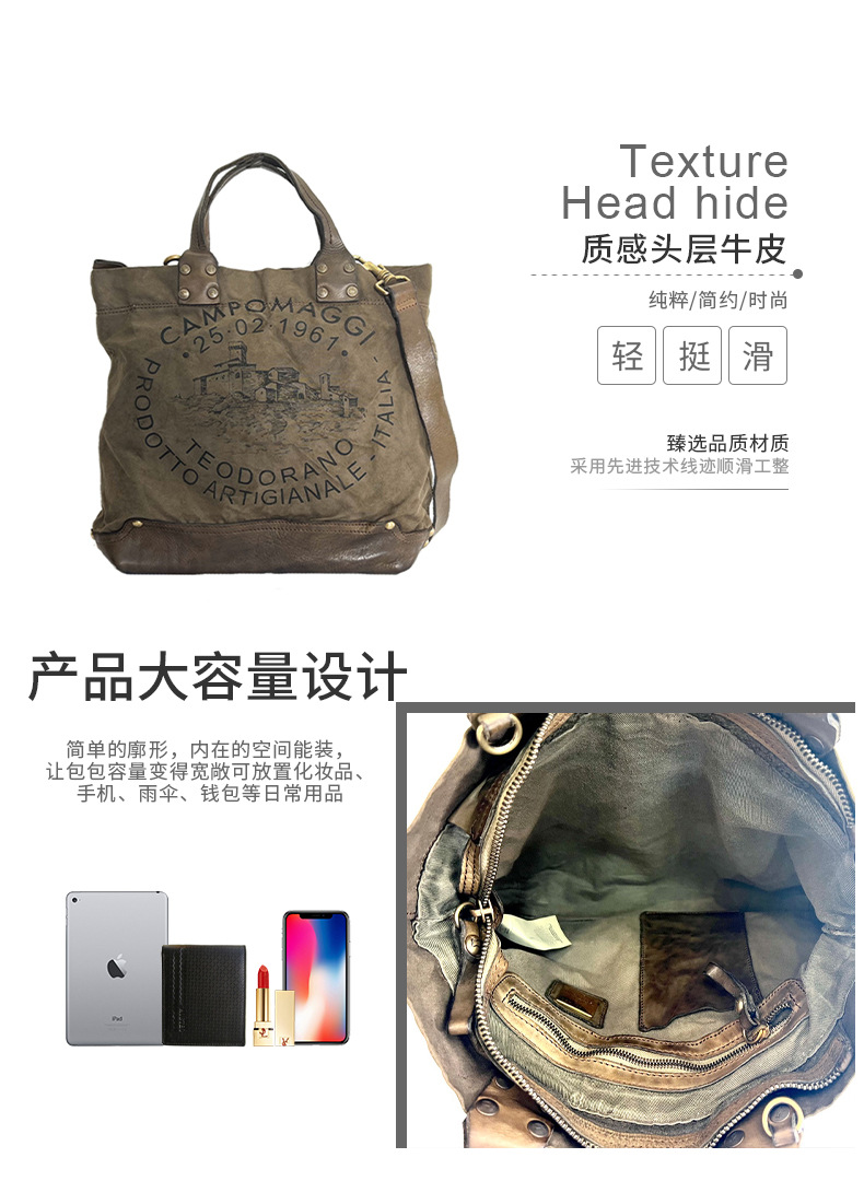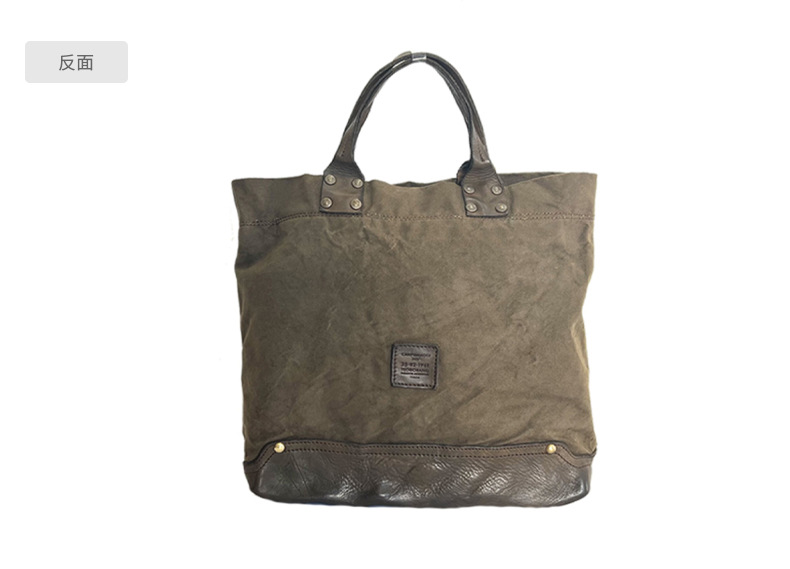 Fábrica directa retro bolso de mano japonés y coreano hoja curtido bolso de cuero de vaca letras bolso lienzo color de contraste empalme de mano