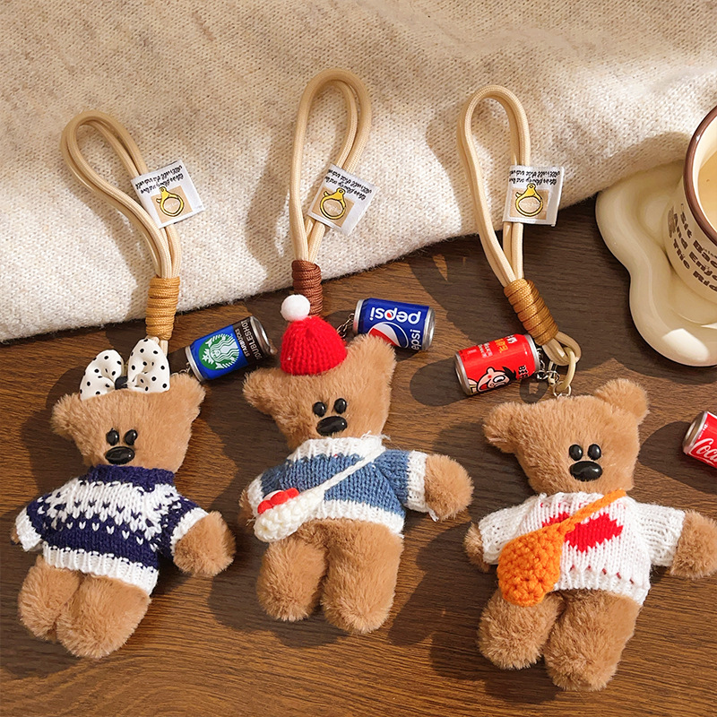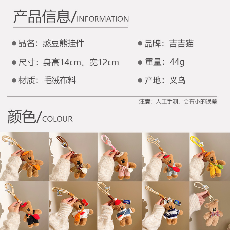 Peludo Bean Bear Keychain Colgante pareja de muñecas de amigos bolsos de teléfono móvil colgante colgante muñecas