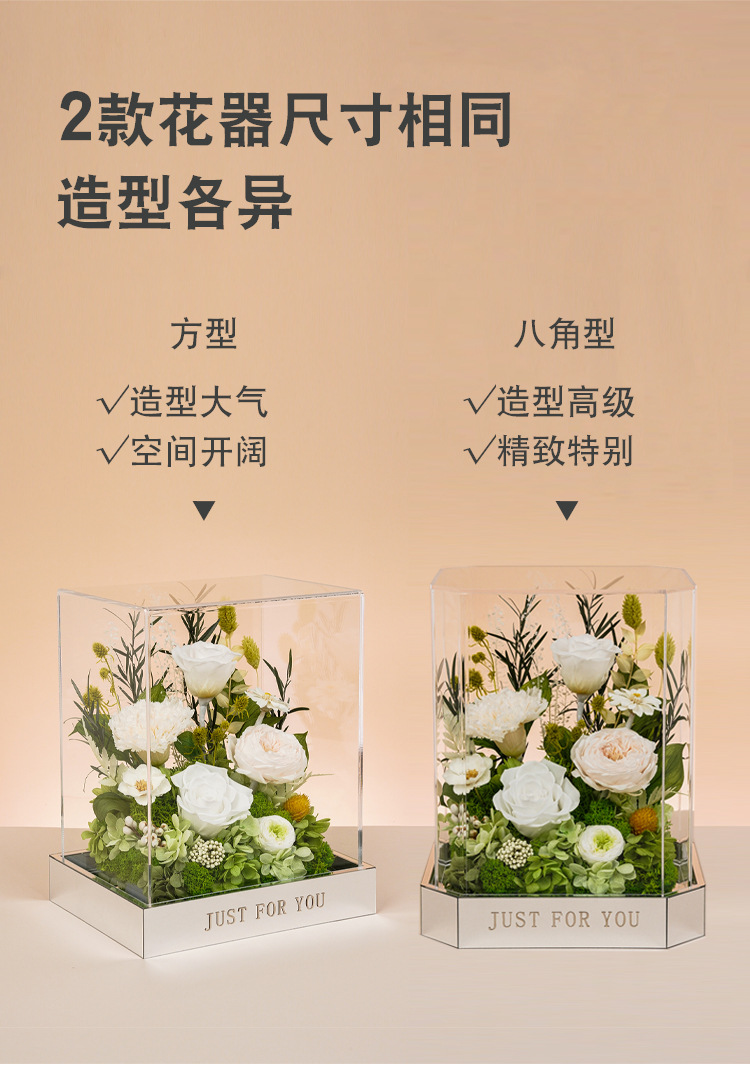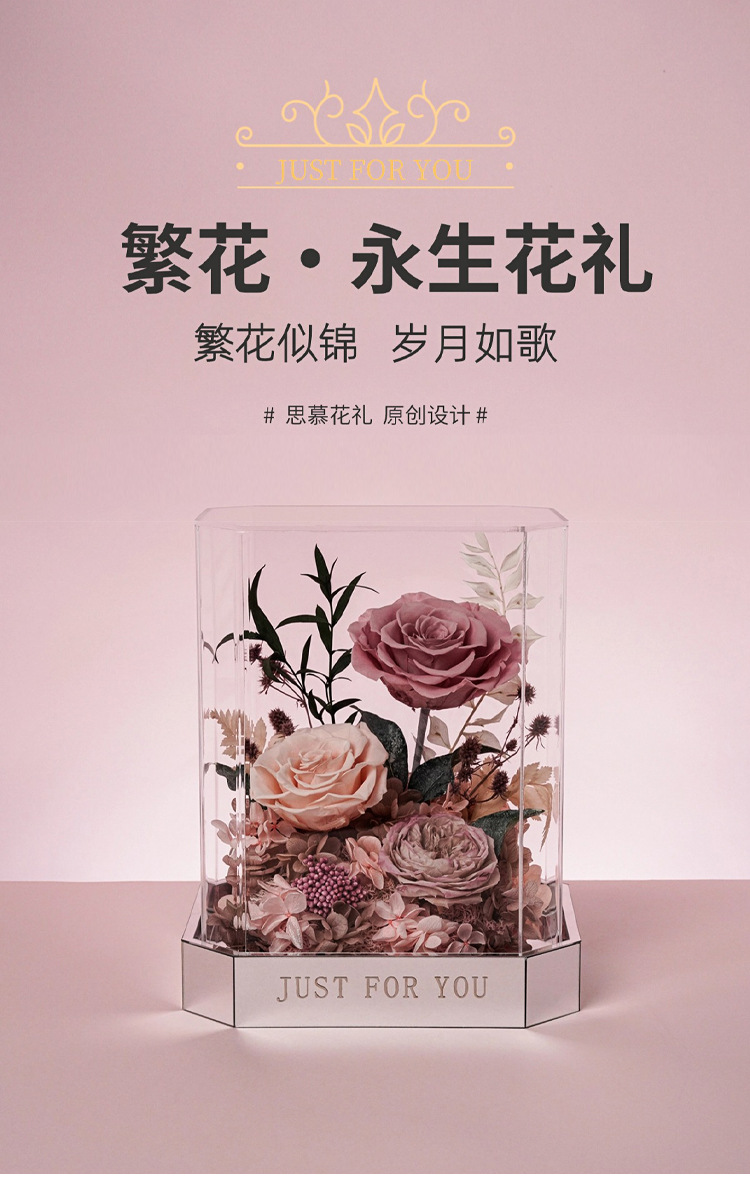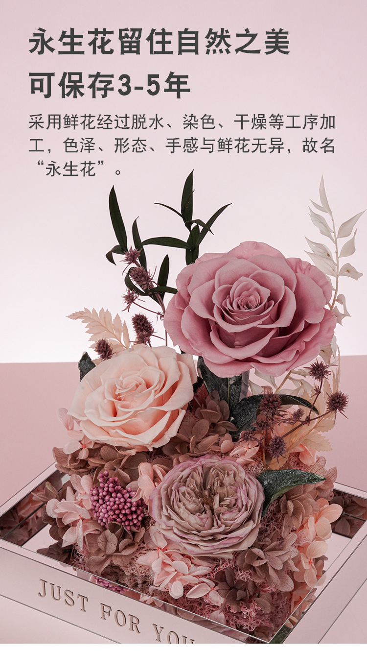 Flores de vida eterna rosa verdaderas flores acabadas acrílicas cajas de San Valentín para mamá novia regalos de alta calidad al por mayor