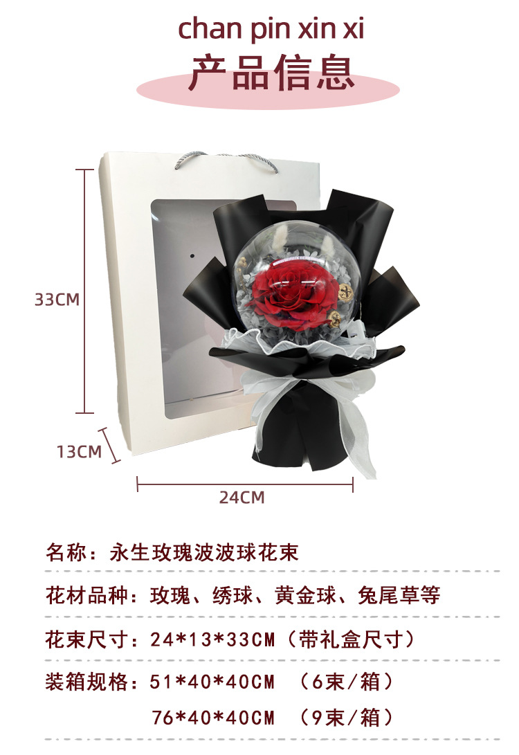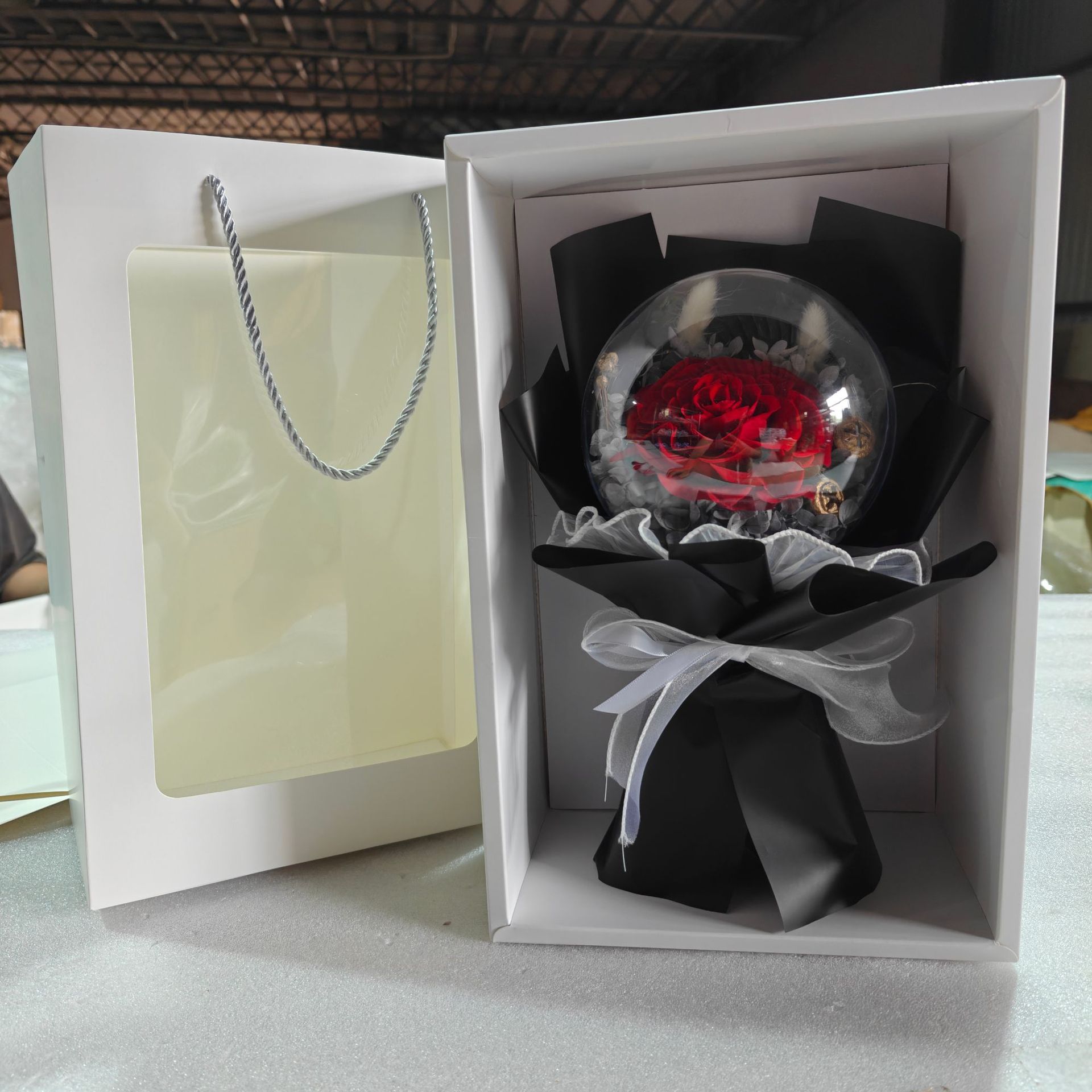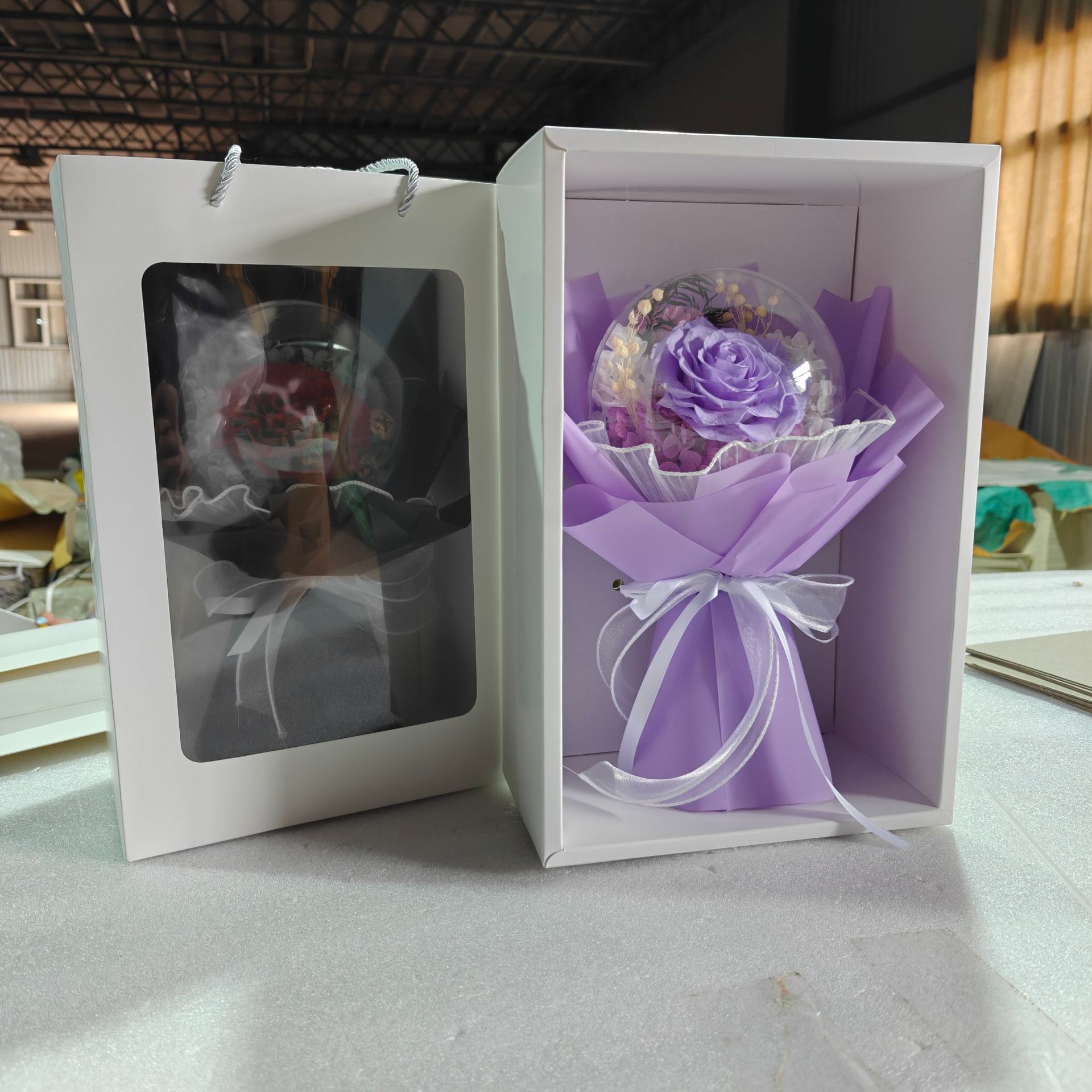 Yunnan Eternal Life Rose Bobo Ball Bouquet Caja de regalo terminada con luz Qixi San Valentín regalo hortensias ramo seco