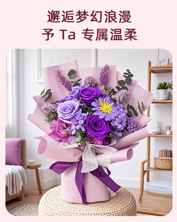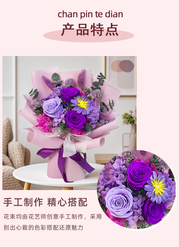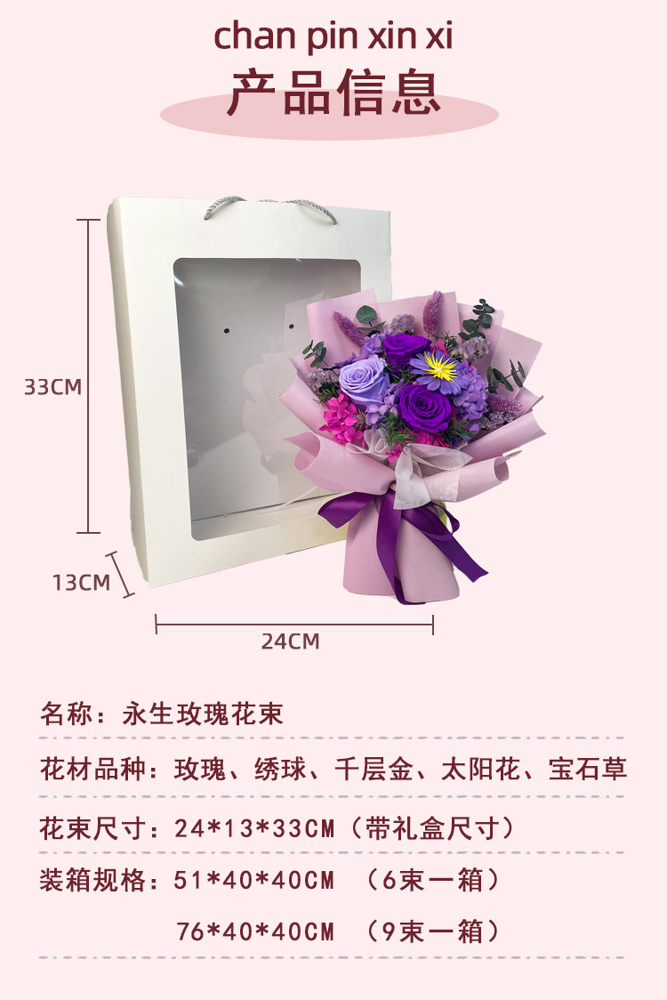 Flor eterna transfronteriza ramo de rosas moradas producto terminado San Valentín novia regalo de cumpleaños flor eterna decoración de alta calidad