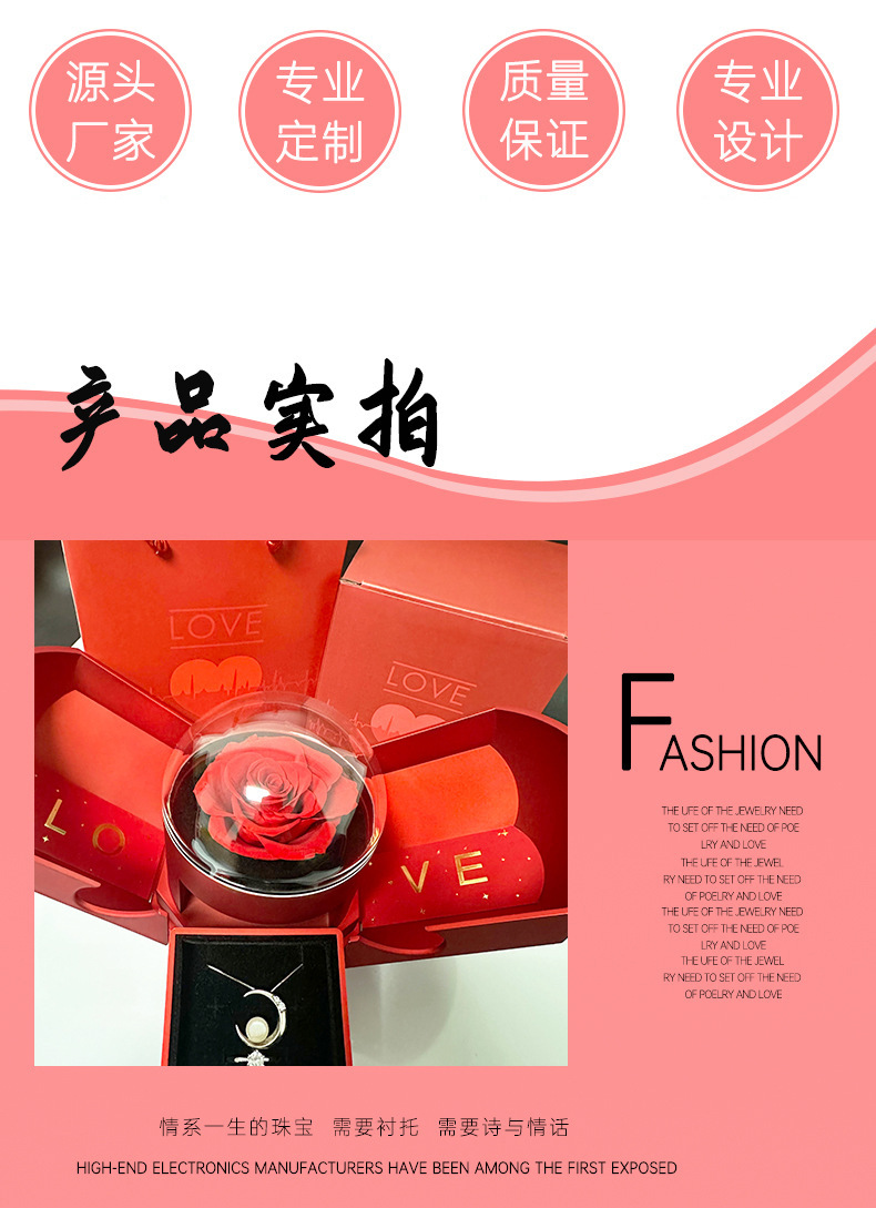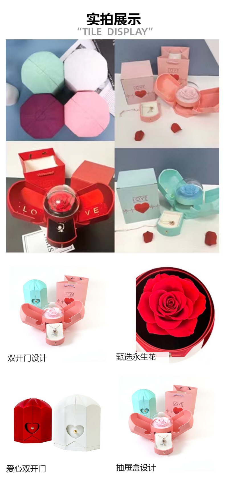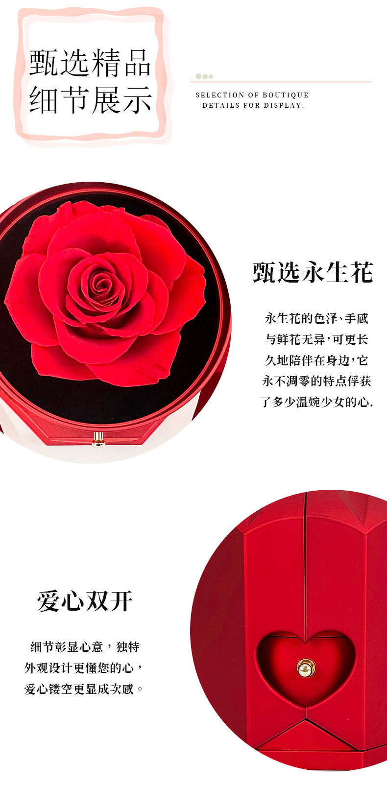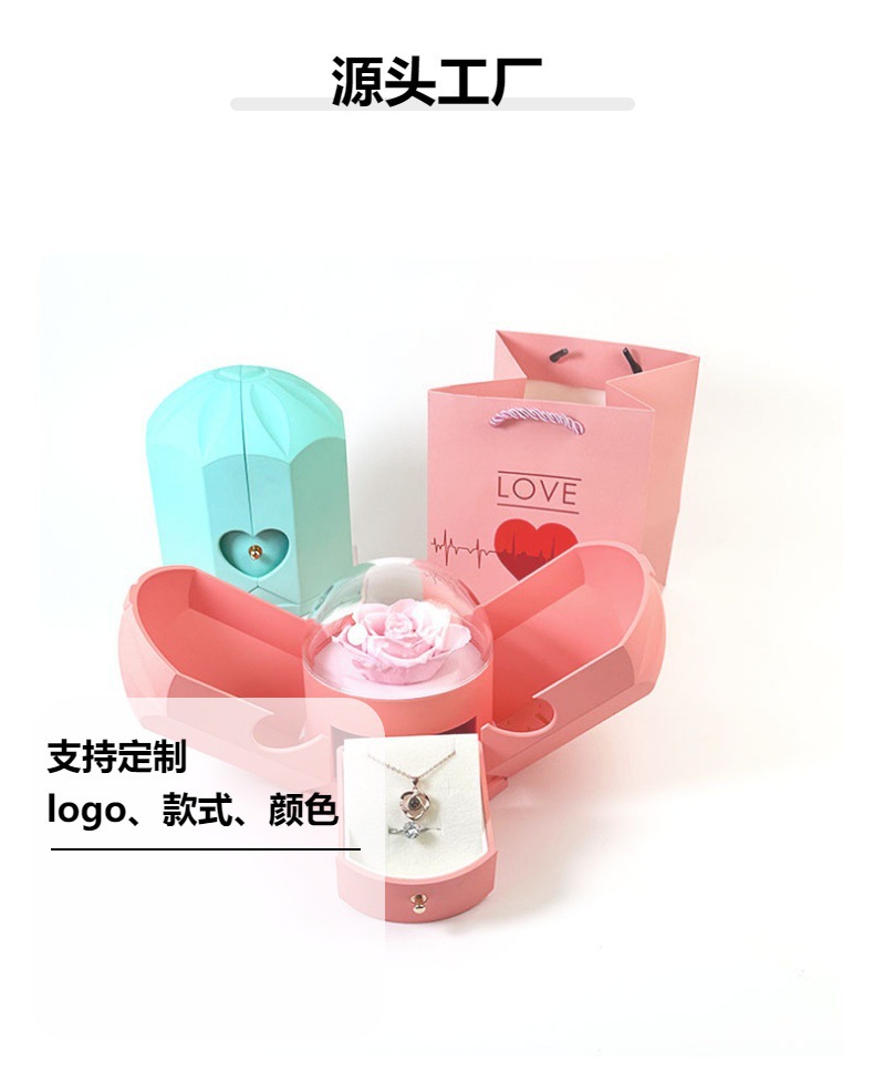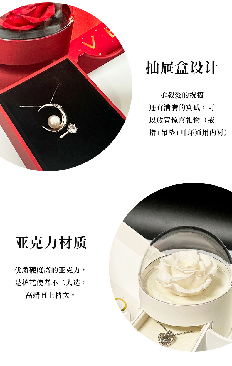 Flor inmortal doble puerta collar caja de joyas acrílica regalos de San Valentín ventas transfronterizas adornos de flores inmortales