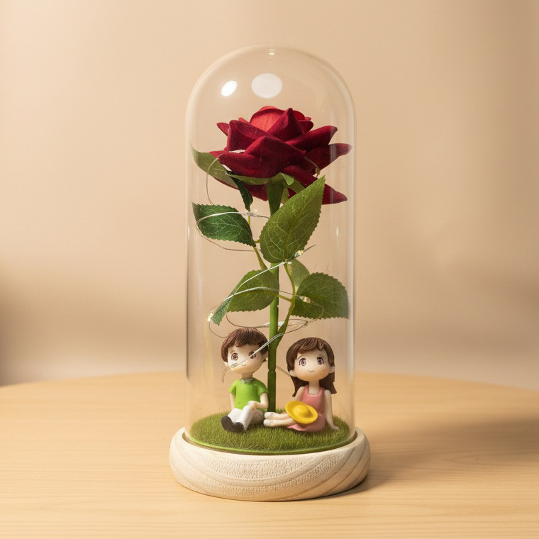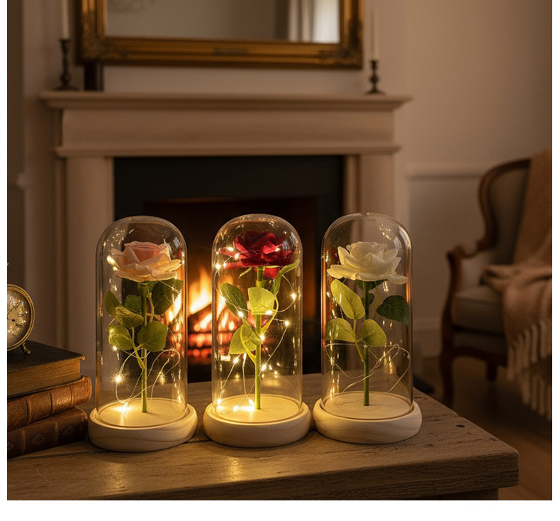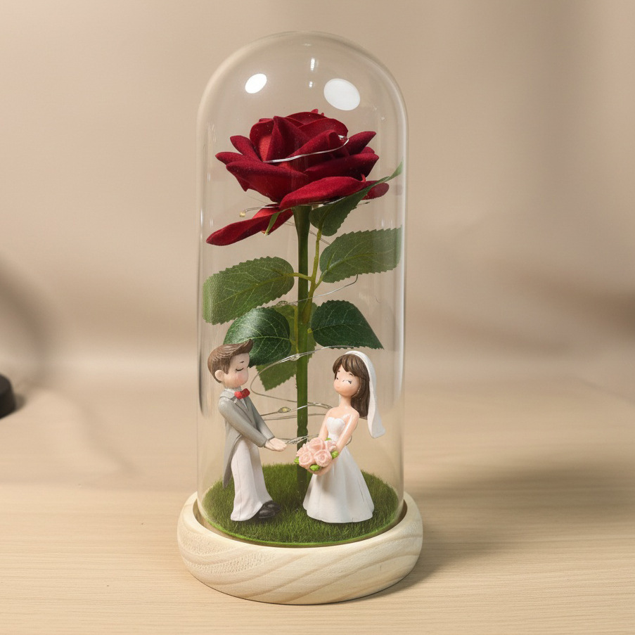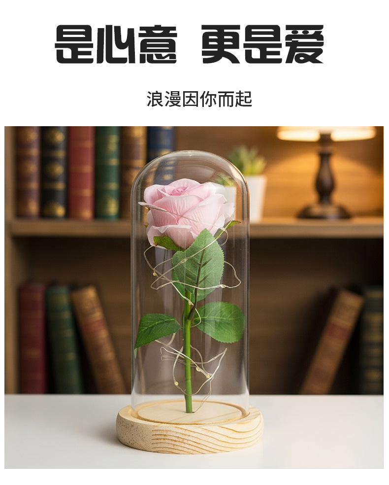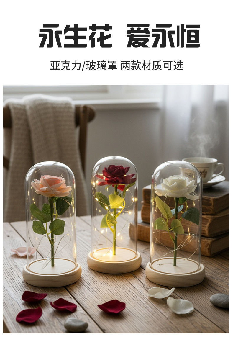 Rosas transfronterizas flores inmortales ramo de flores cubierta de vidrio regalo de día de San Valentín decoración de alta calidad regalo creativo del día de la madre
