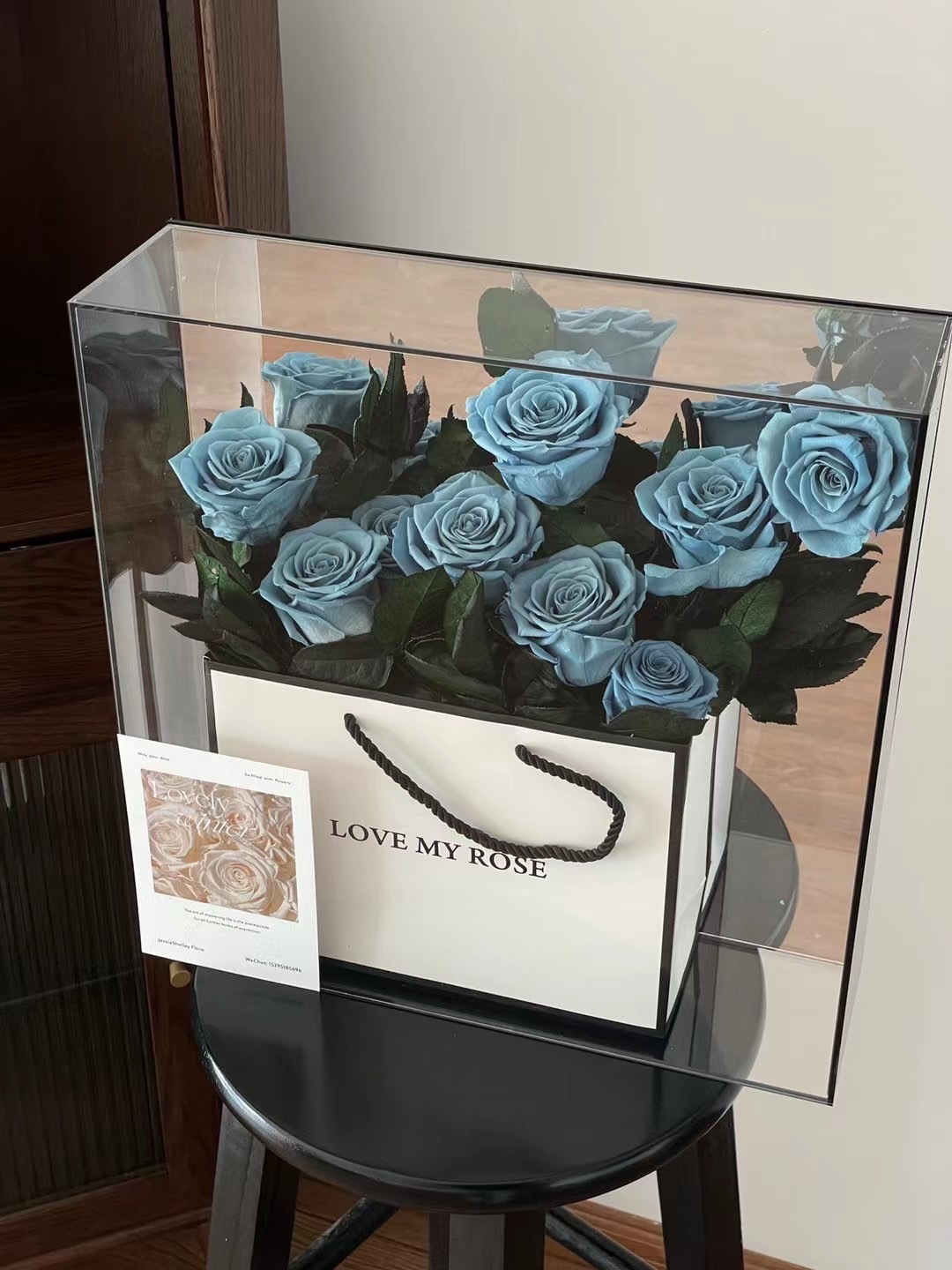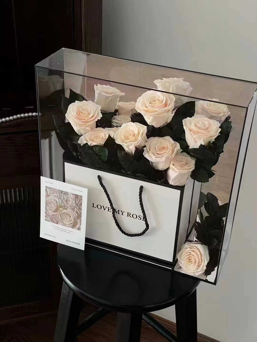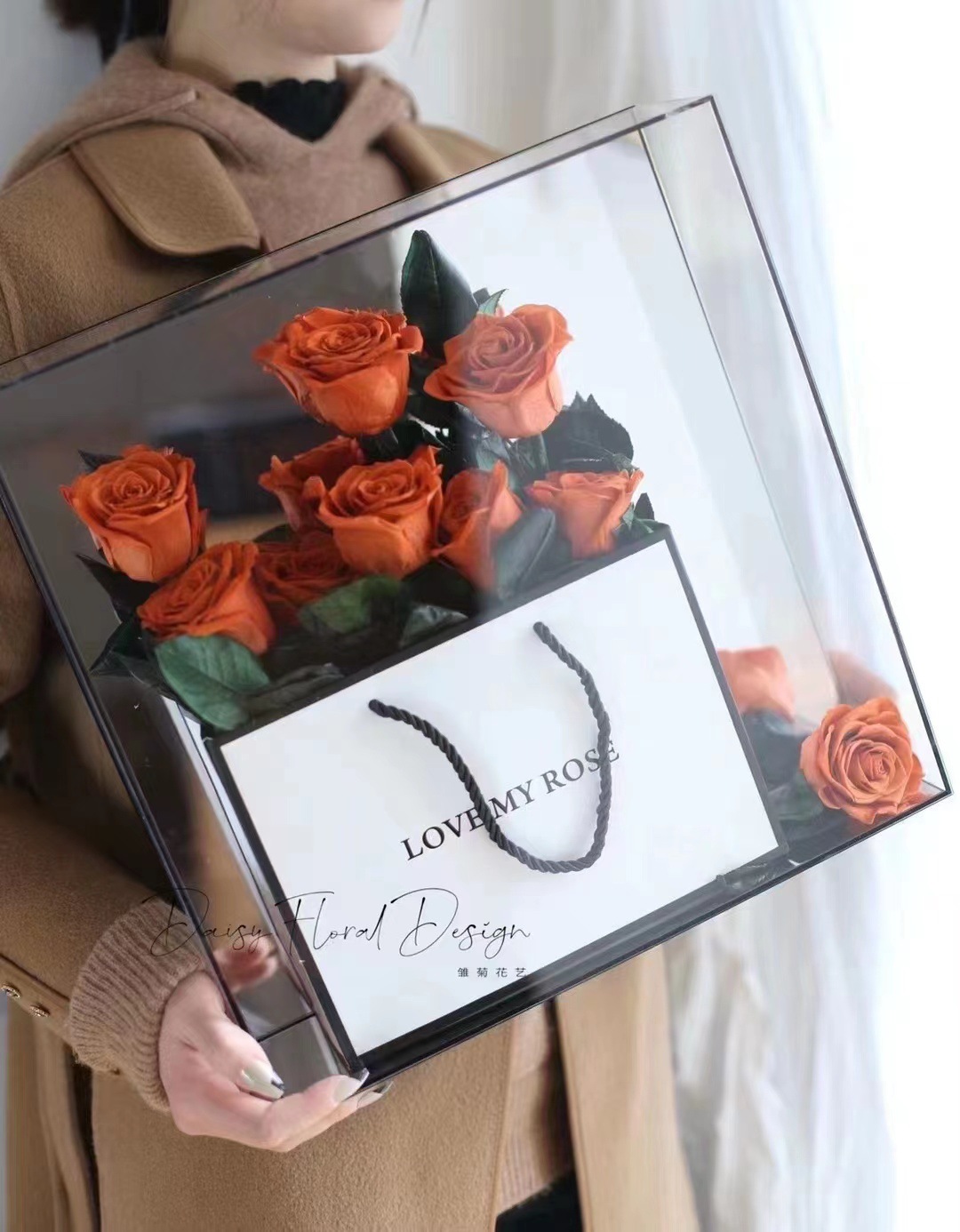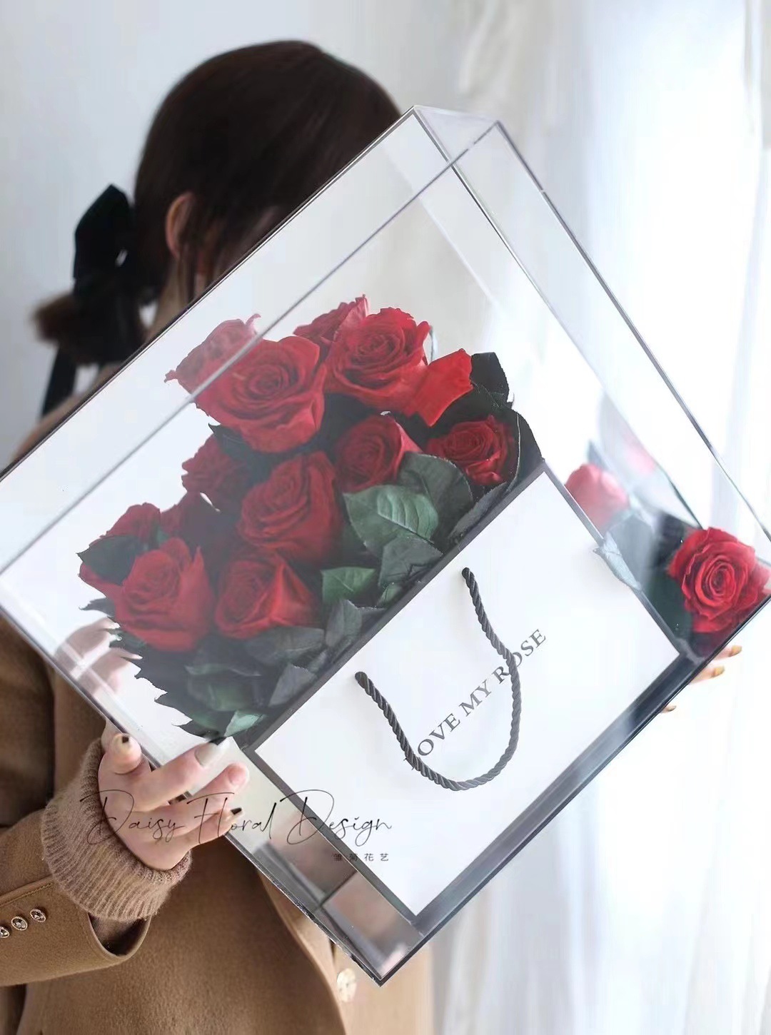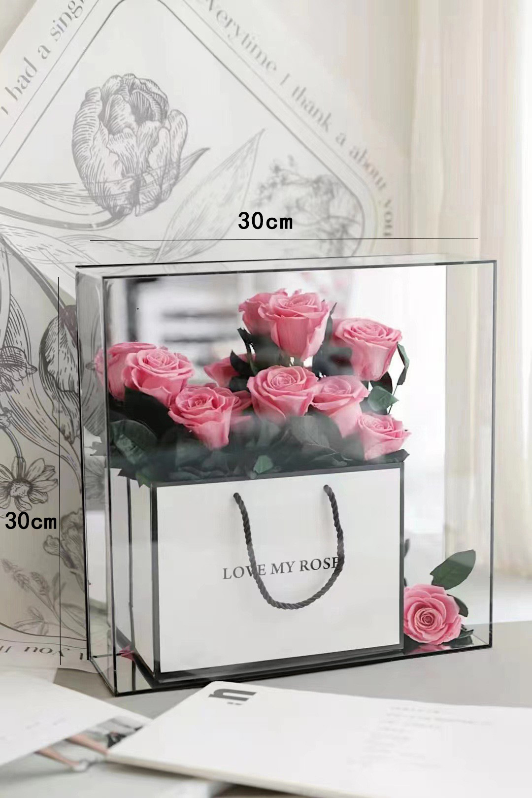 Flor de la eternidad Rose acabado caja de flores acrílico Día de San Valentín para novia regalo de cumpleaños de alto nivel perímetro de la eternidad