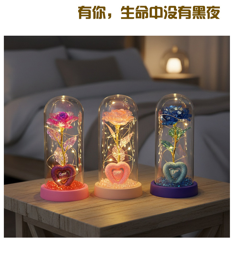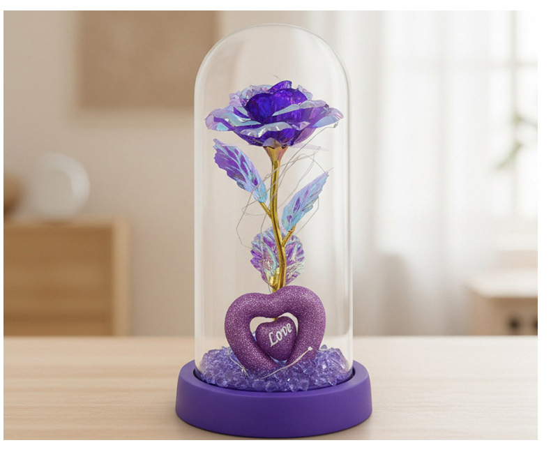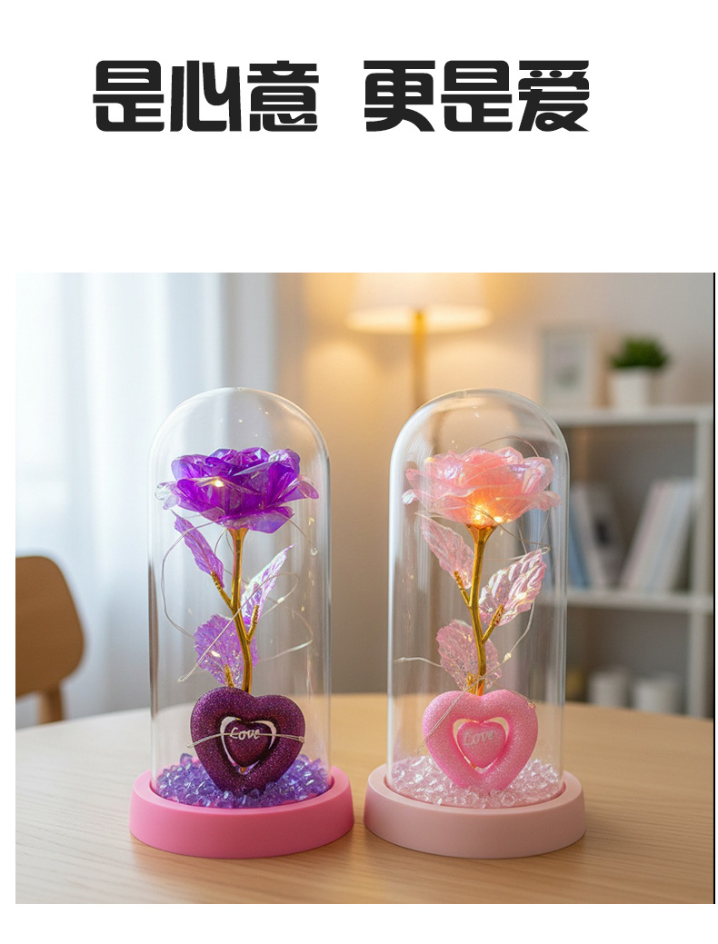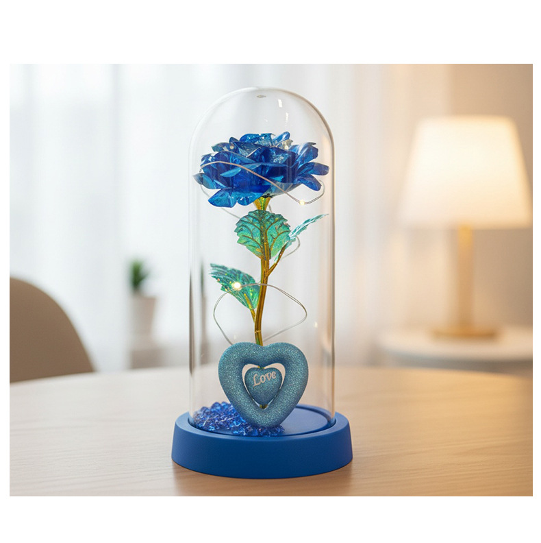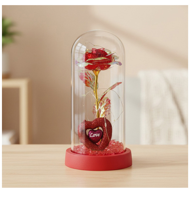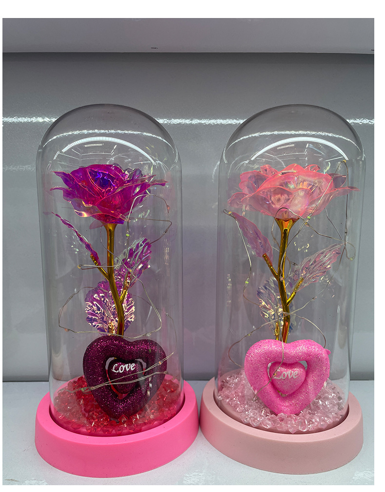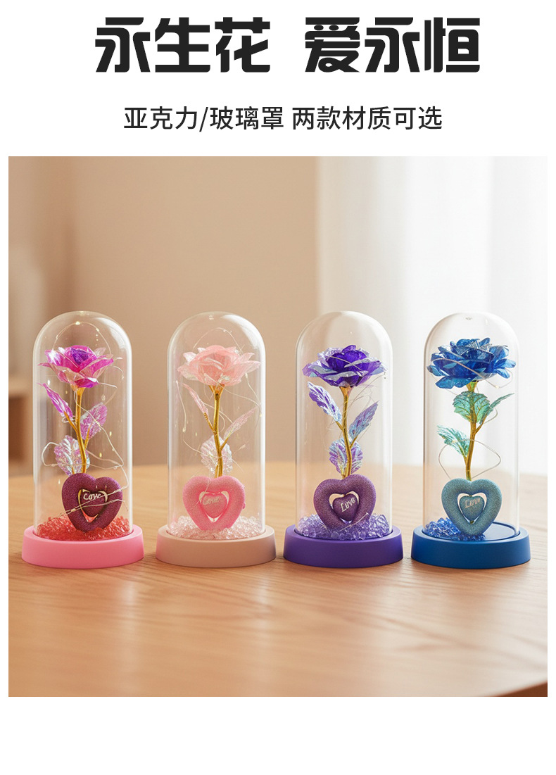 Caja de regalo de rosa de oro transfronteriza cubierta de vidrio acrílico regalo de San Valentín imitación de flores adornos de regalo eterno