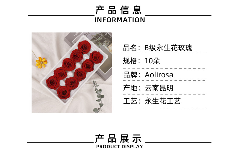 Clase B flor eterna flor rosa ramo de 3-4cm flor real de bricolaje fábrica de Yunnan al por mayor flor de San Valentín flor seca 520