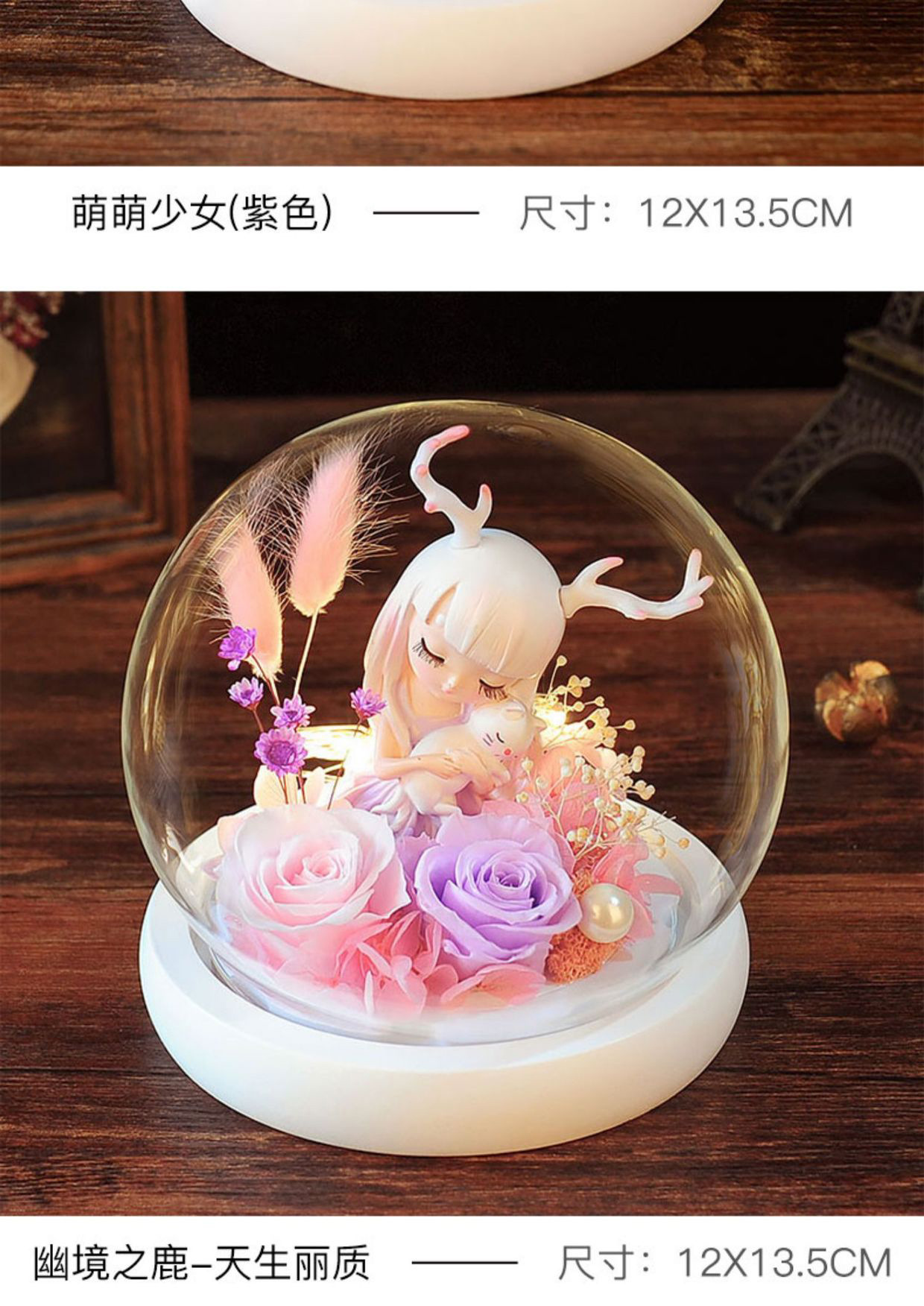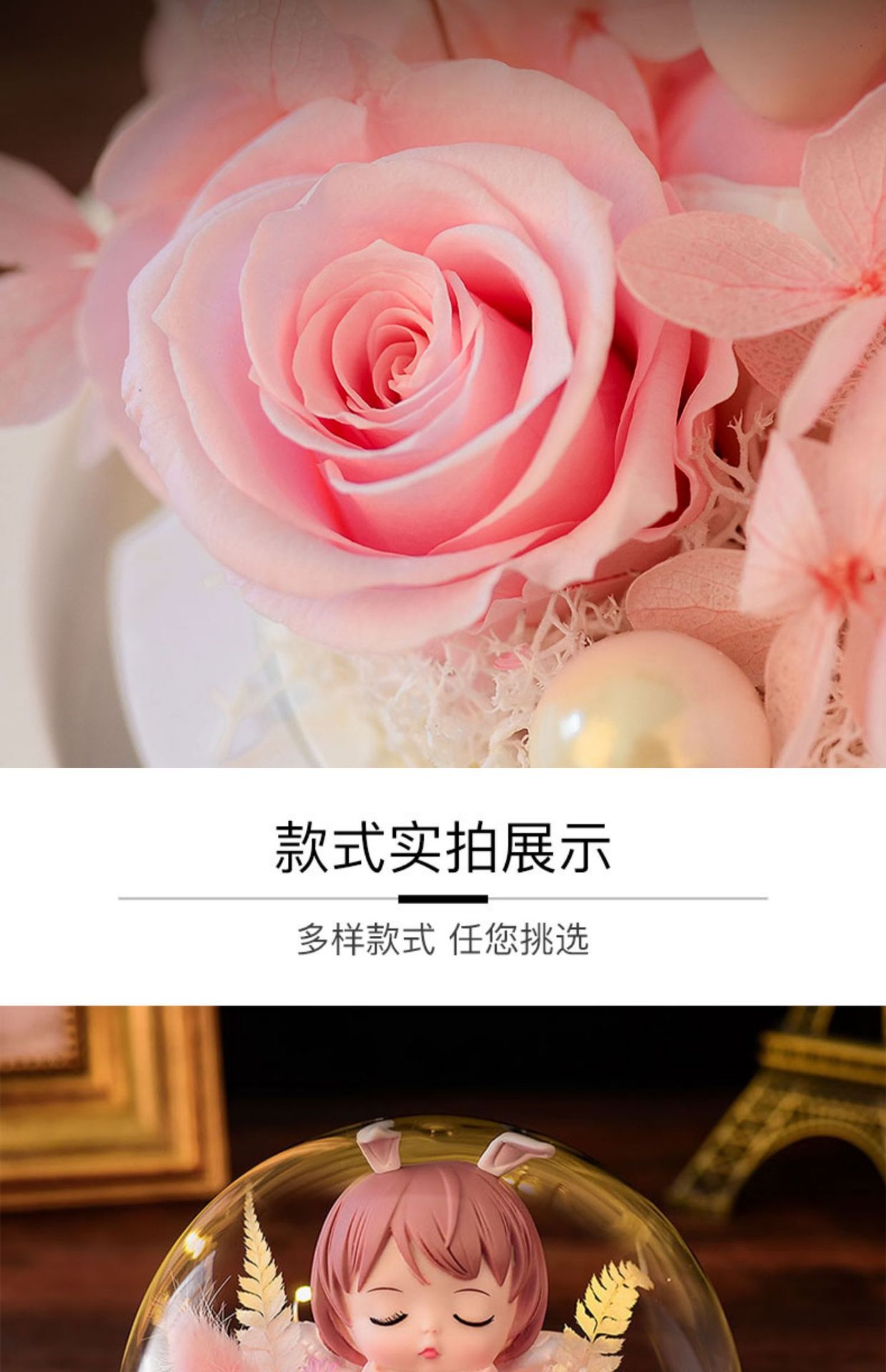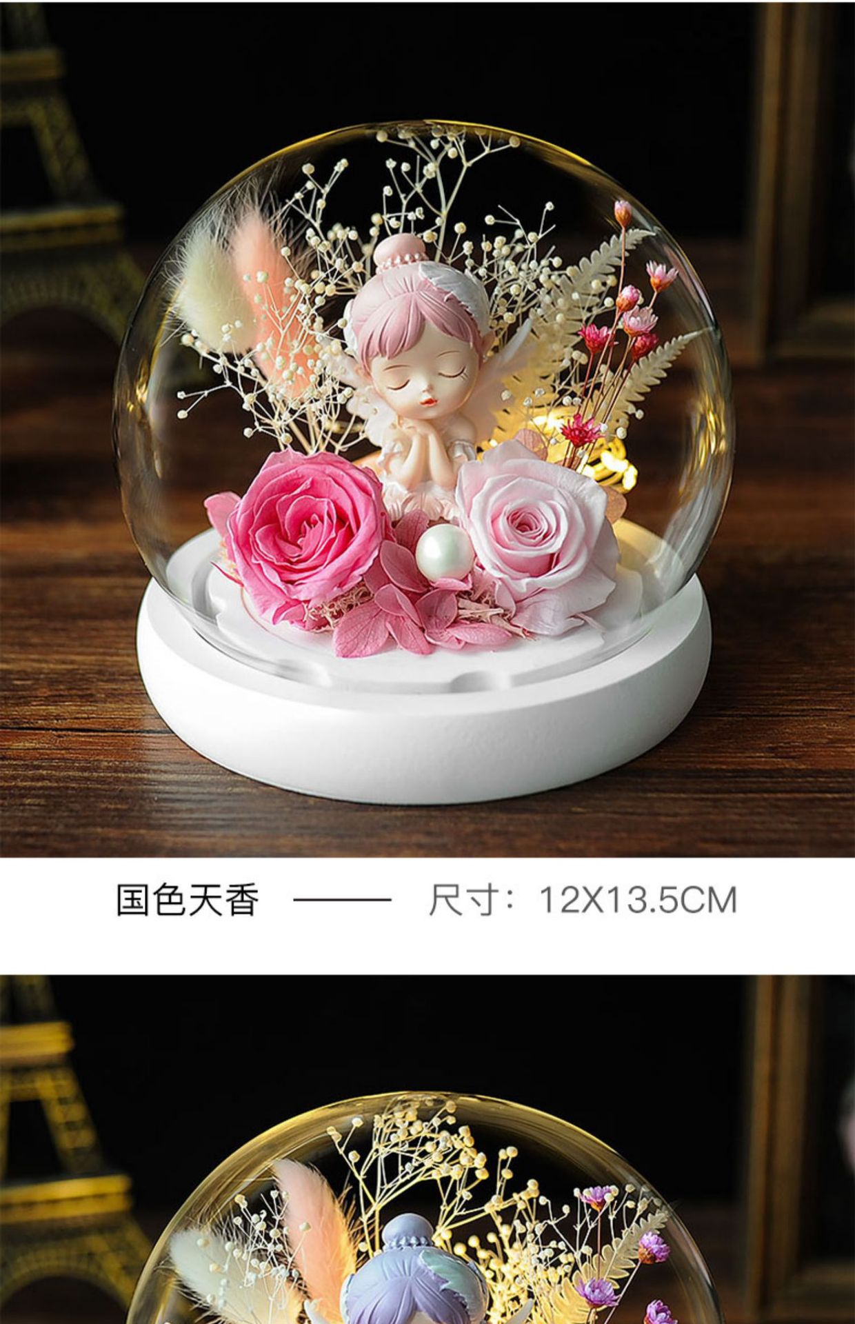 Flores de la vida eterna Rose Anne Angel Glass Cover Caja de regalo para la temporada de graduación de San Valentín para amigos de la escuela adornamiento de flores de la vida eterna