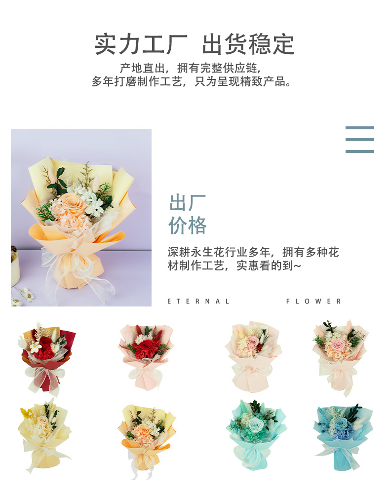 Flor inmortal, ramo de flores de rosas, productos terminados de alta calidad, día del hombre, regalo de flores verdaderas para mamá y novia, ramo de flores inmortales al por mayor.