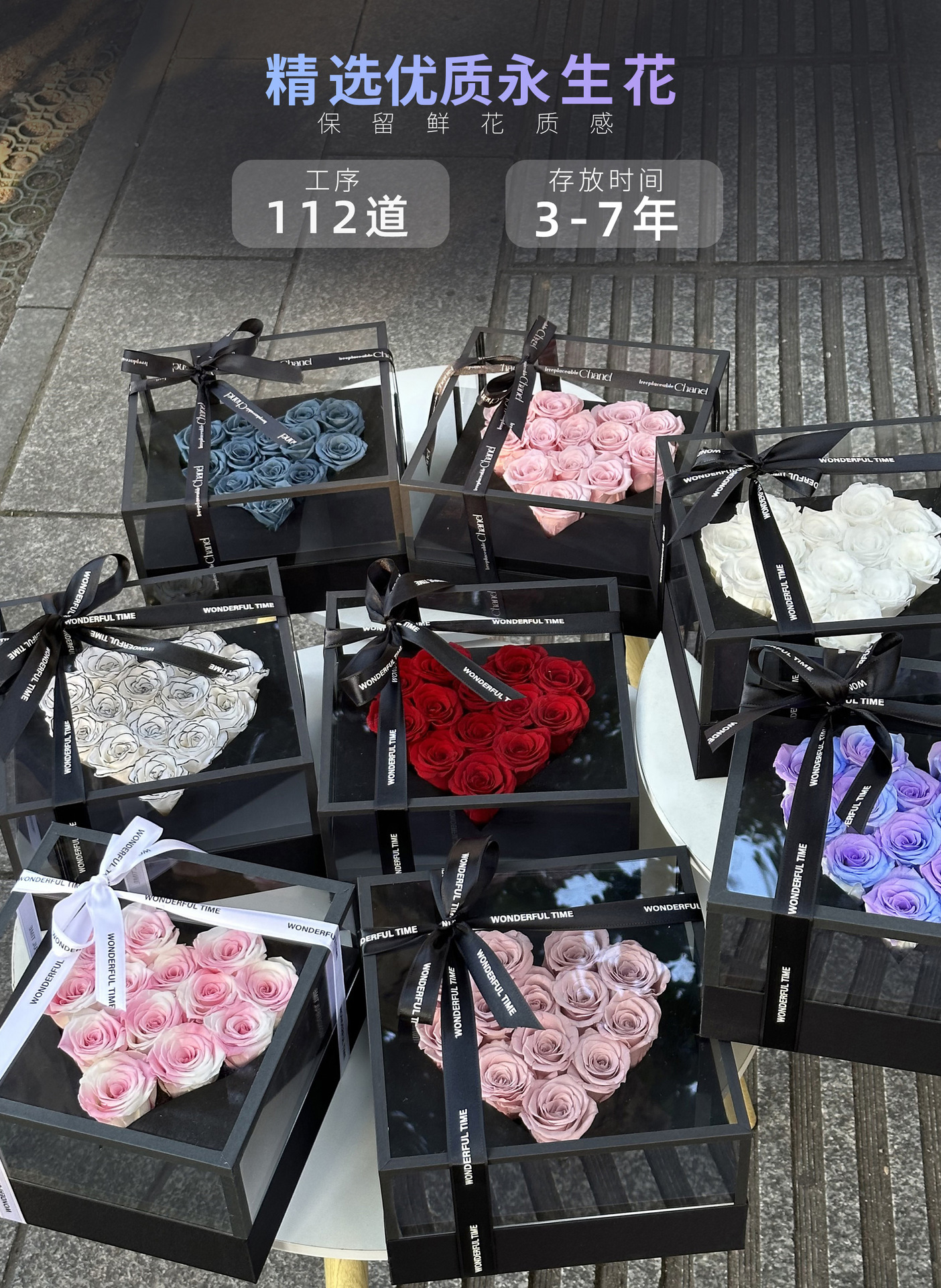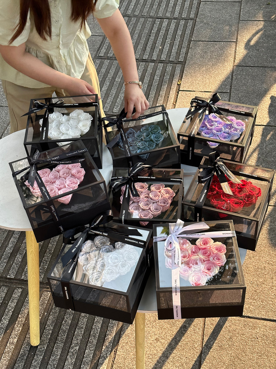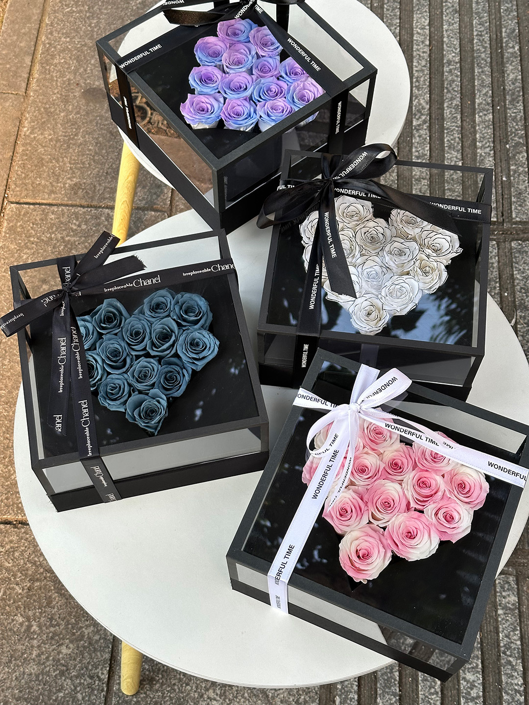 Flor eterna rosa en forma de corazón caja de regalo decoración cubierta de vidrio acrílico para novia regalo de cumpleaños Día de San Valentín