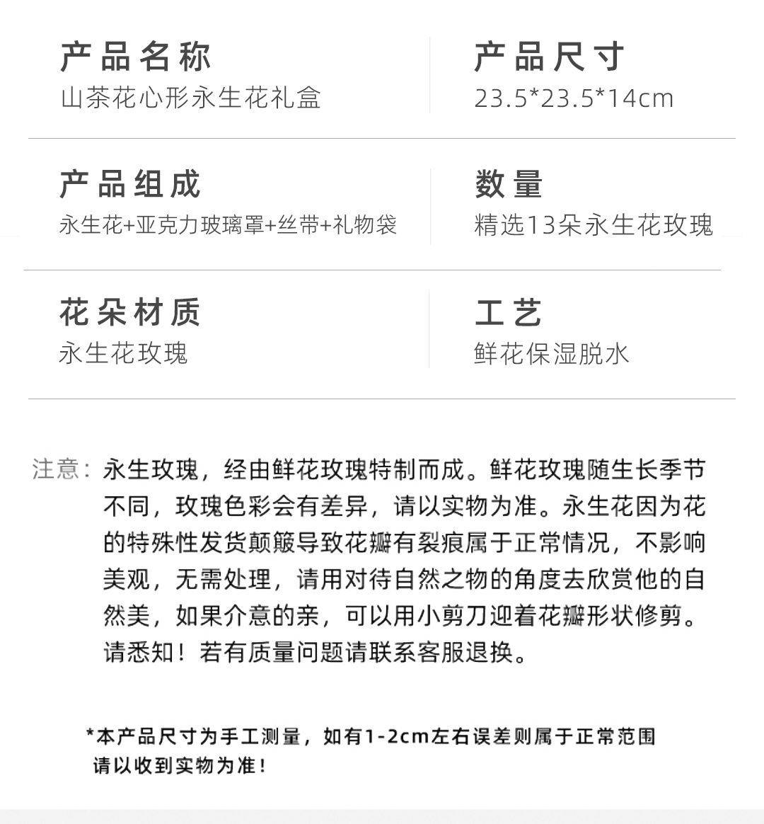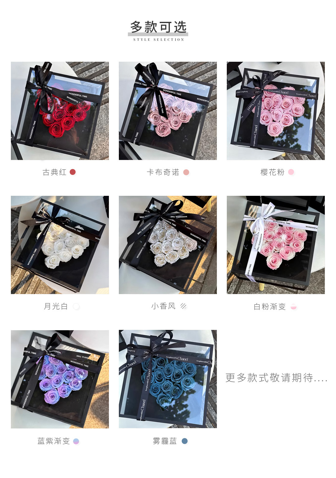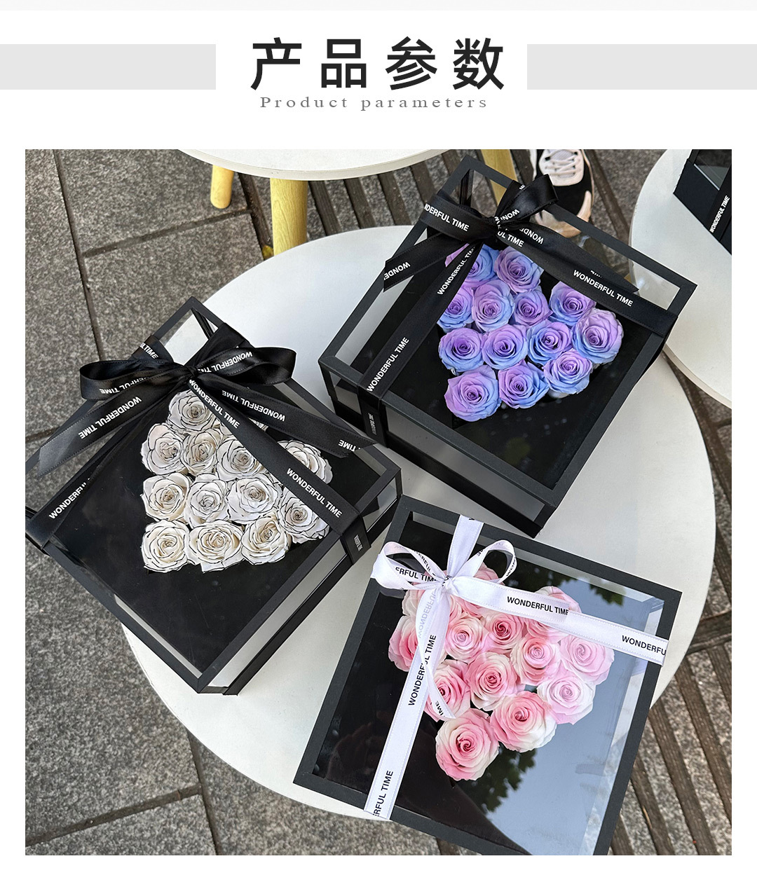 Flor eterna rosa en forma de corazón caja de regalo decoración cubierta de vidrio acrílico para novia regalo de cumpleaños Día de San Valentín