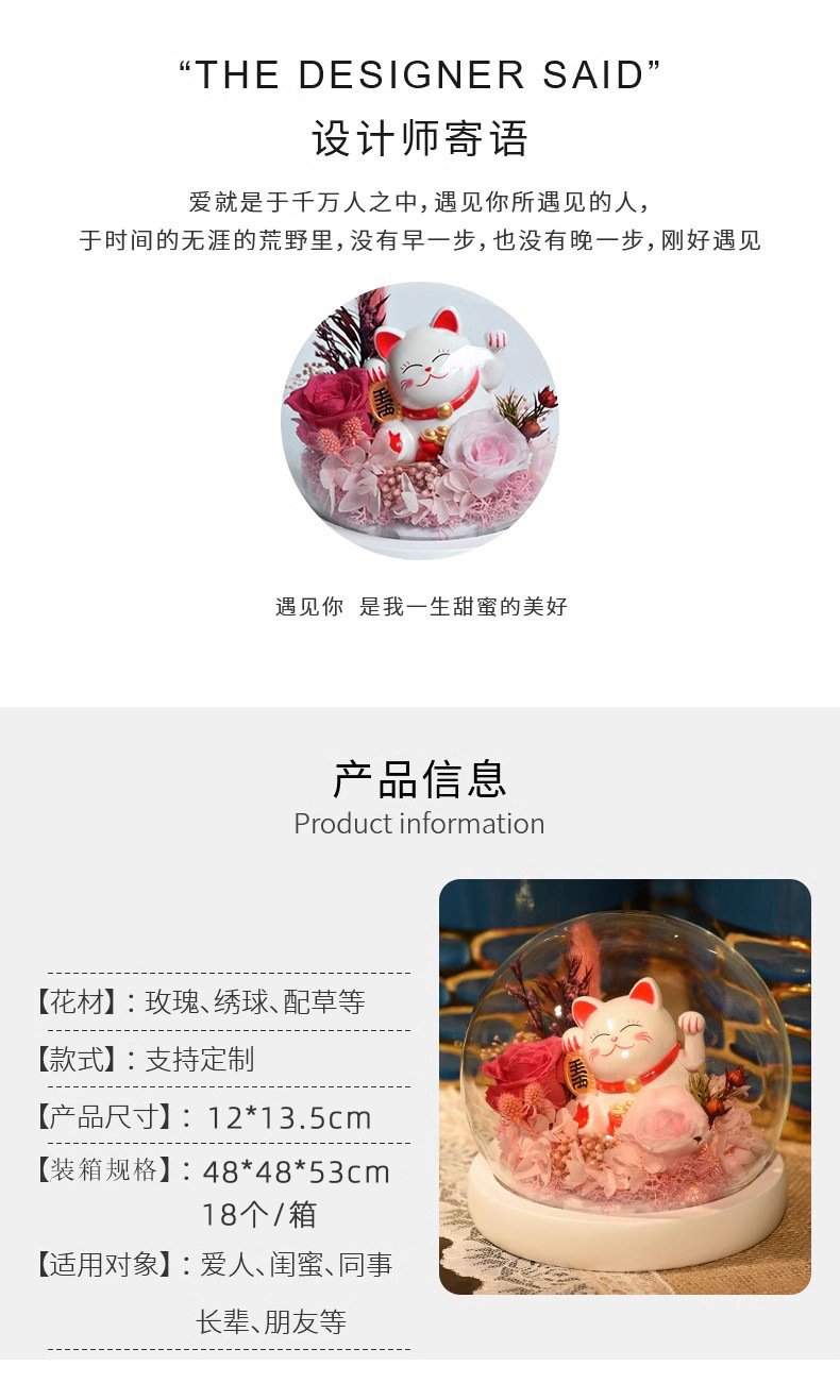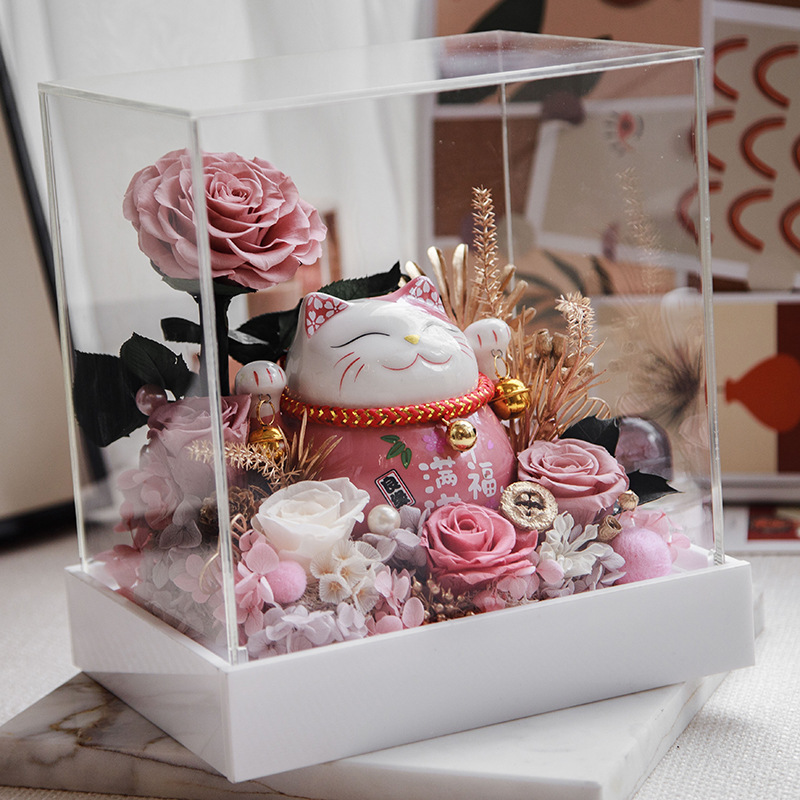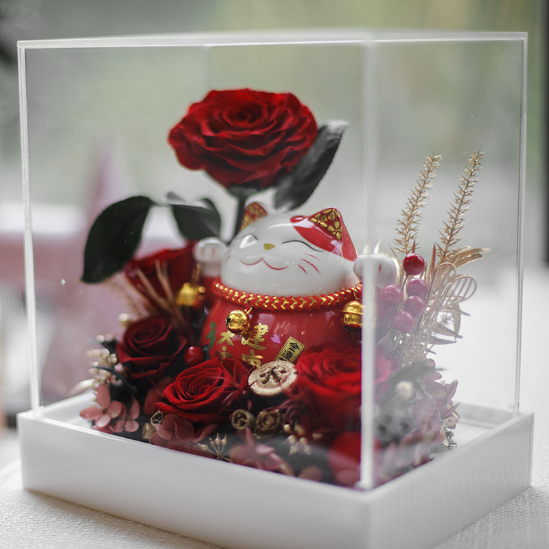 Rosa eterna luz de la noche flor eterna luz de la noche fortuna gato decoración del coche regalo de cumpleaños para novia Día del Maestro