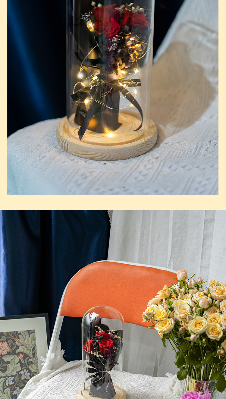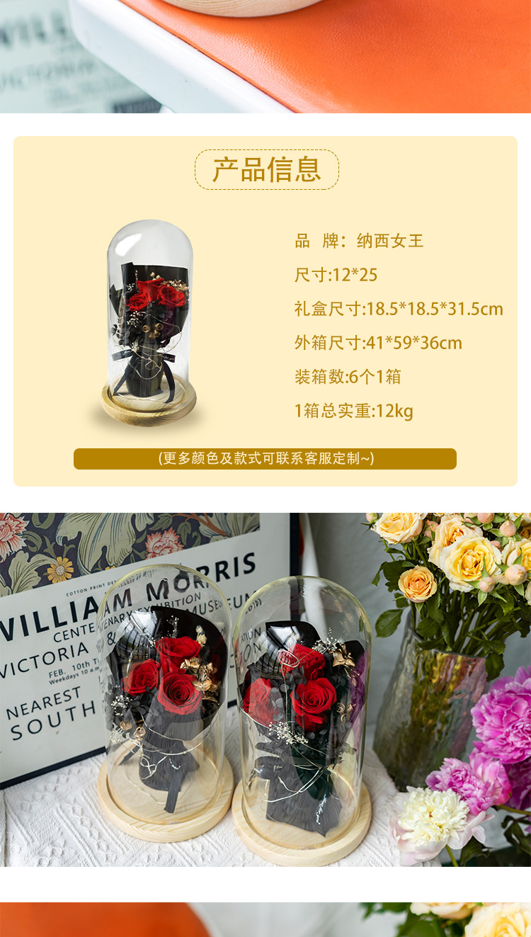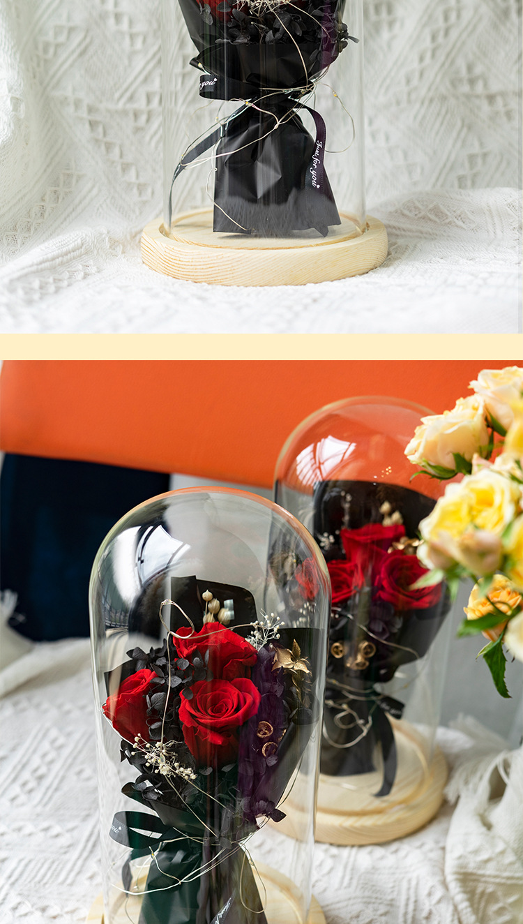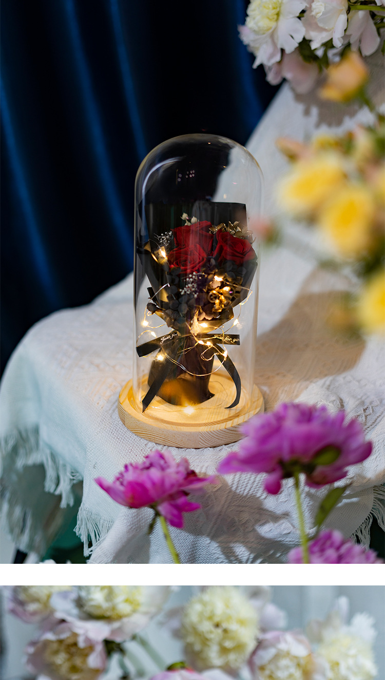 Yunnan Naxi Queen eterna flor cubierta de vidrio ramo decoración del paisaje al por mayor Rosa fresca suministro directo transfronterizo