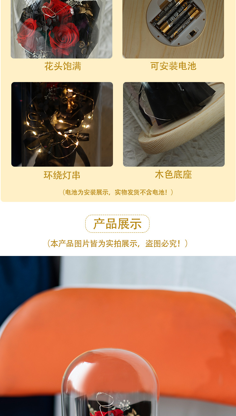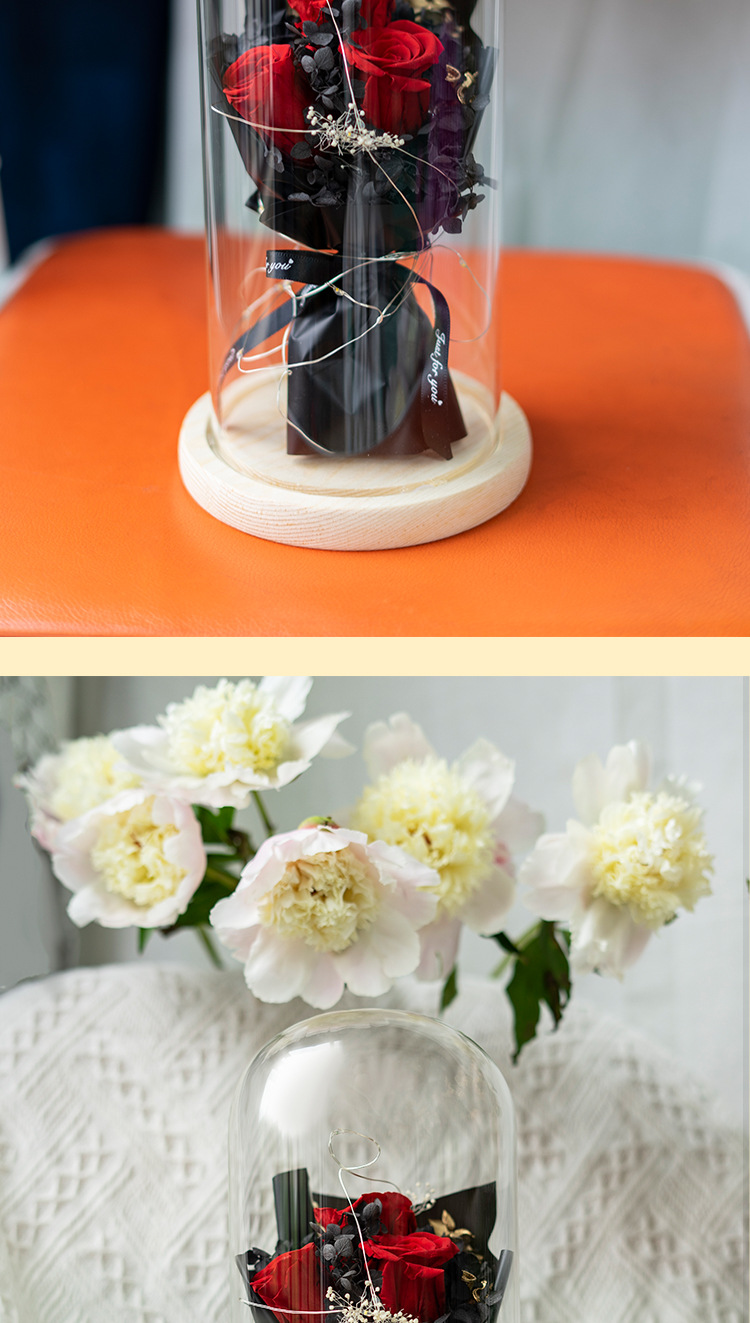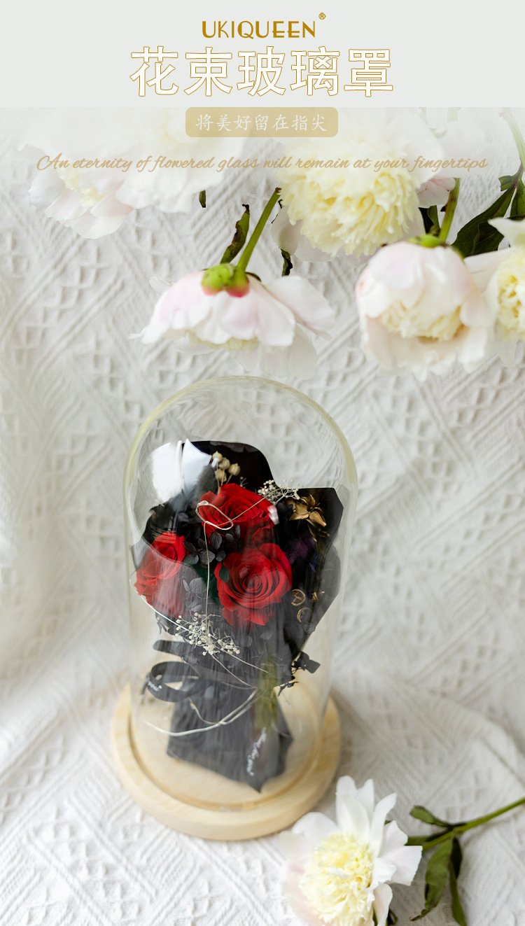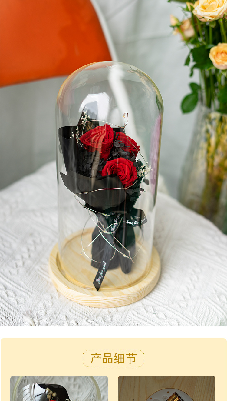 Yunnan Naxi Queen eterna flor cubierta de vidrio ramo decoración del paisaje al por mayor Rosa fresca suministro directo transfronterizo