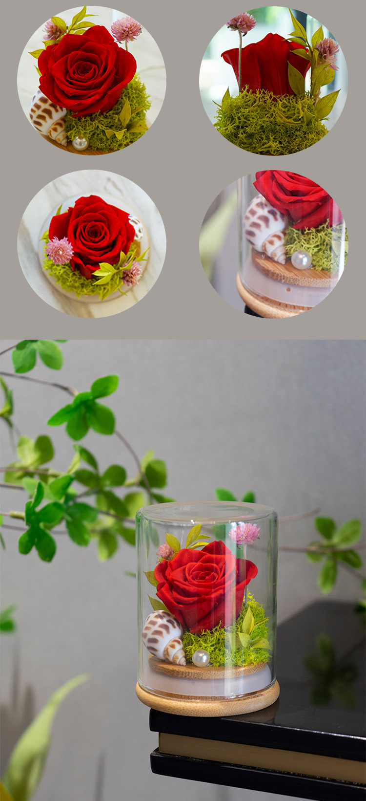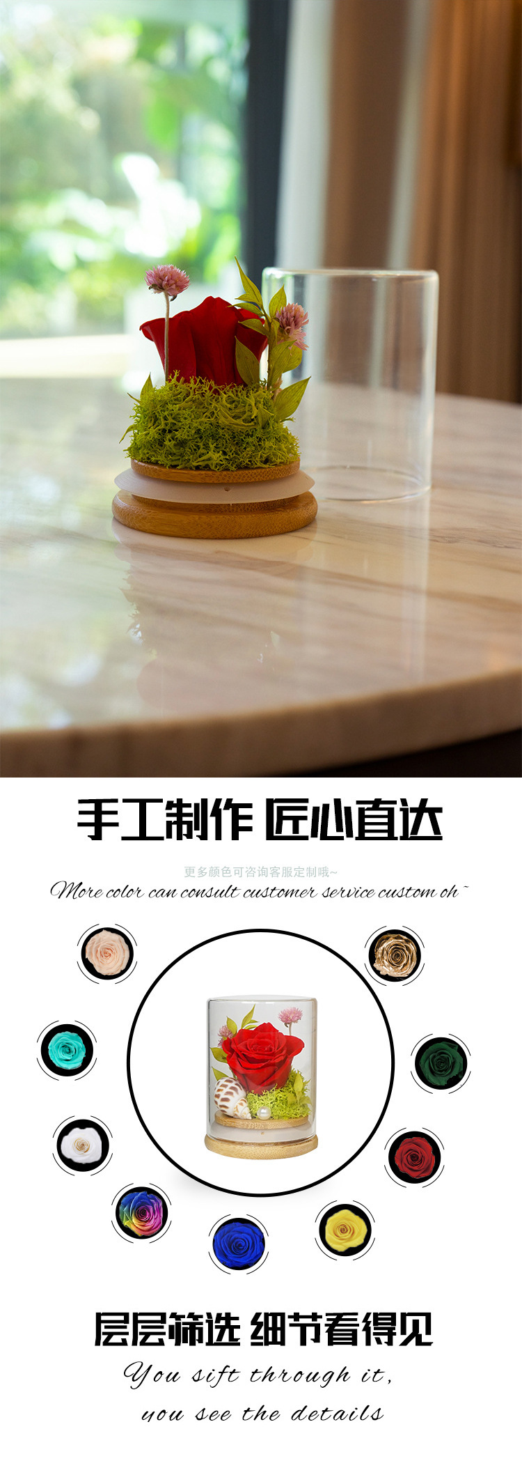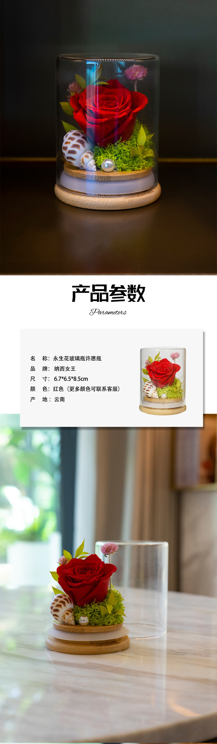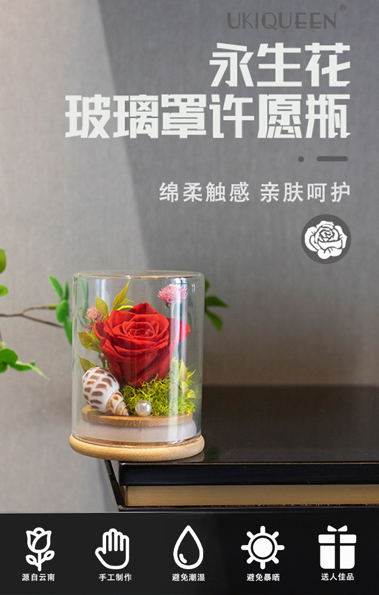 Yunnan Naxi reina flor eterna cubierta de vidrio deseando botella planta espécimen Rosa Flores preservadas Comercio exterior al por mayor