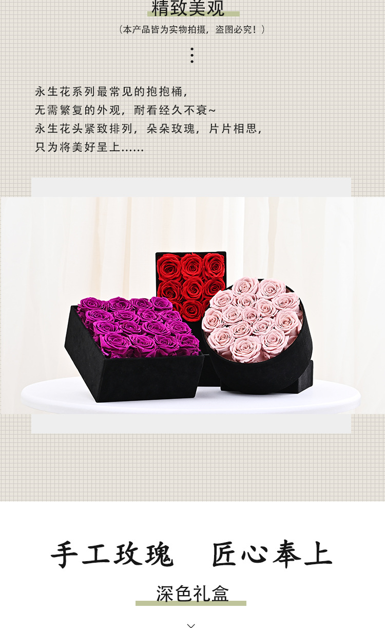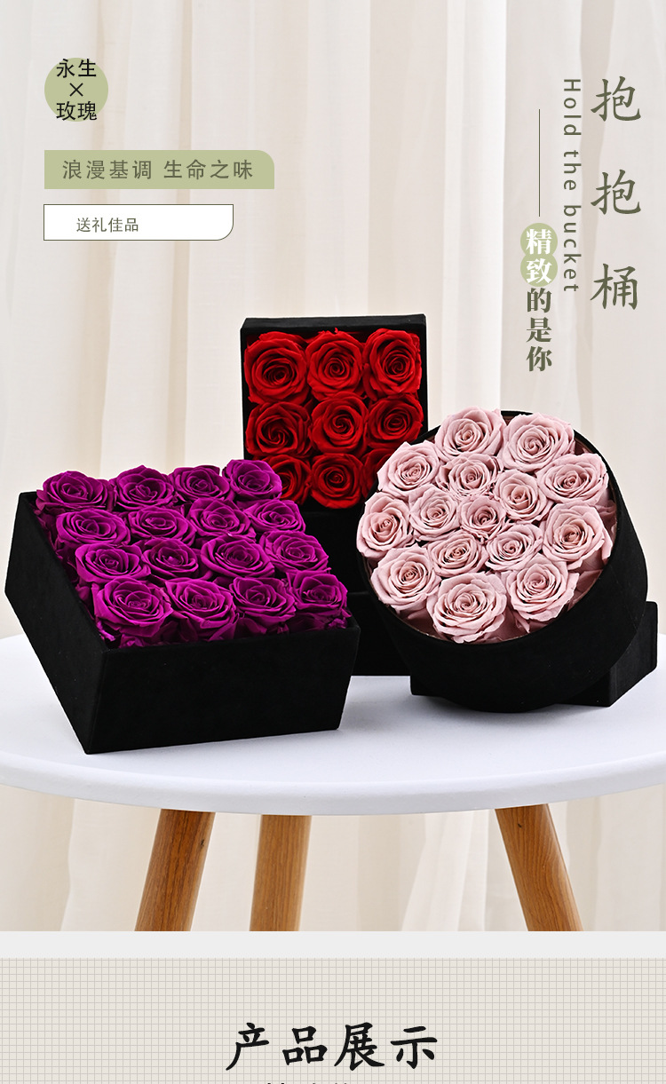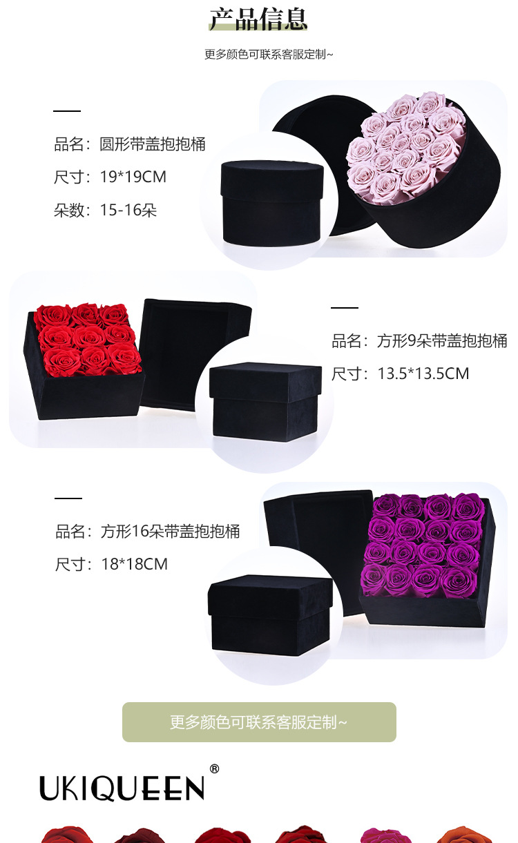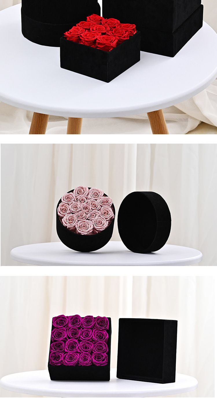 Cubo de rosas eternas con tapa, caja de regalo redonda y cuadrada, adorno de Amazon para comercio electrónico transfronterizo, caja de regalo de flores eternas.
