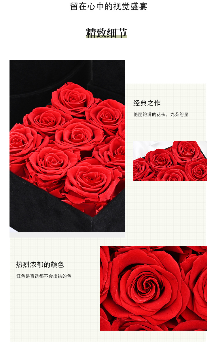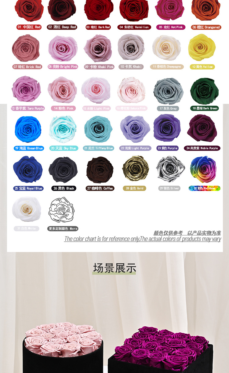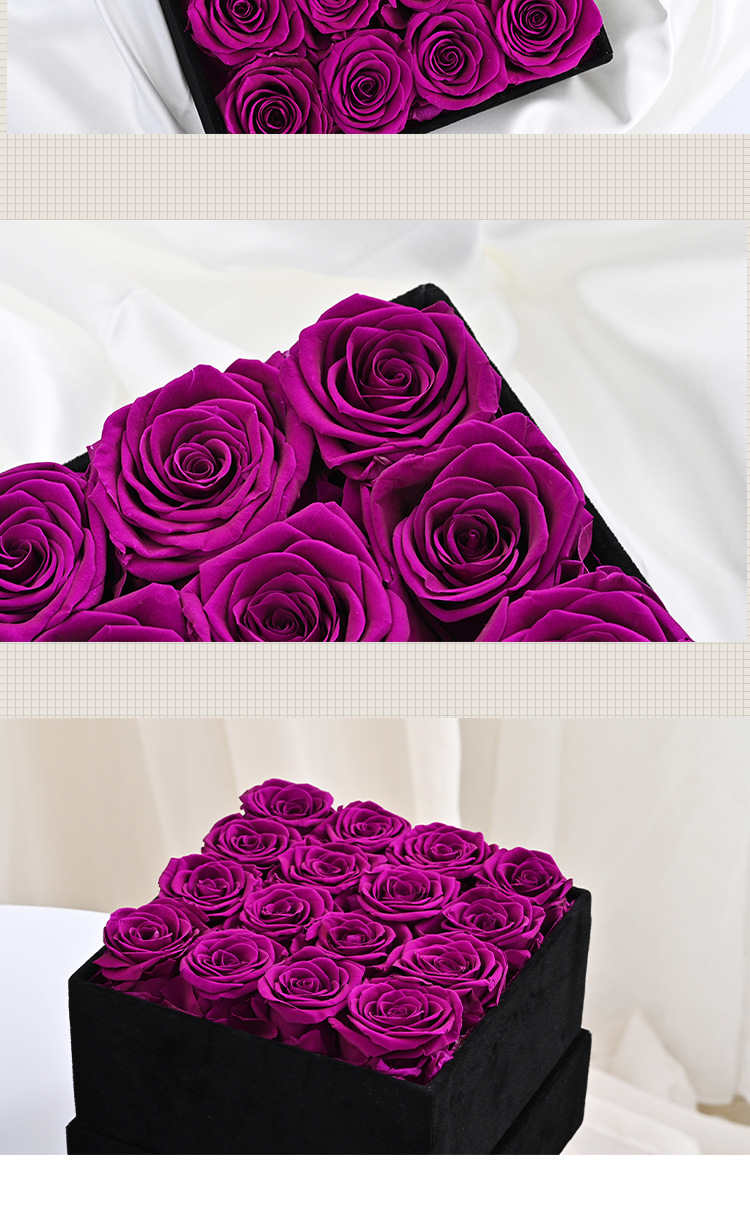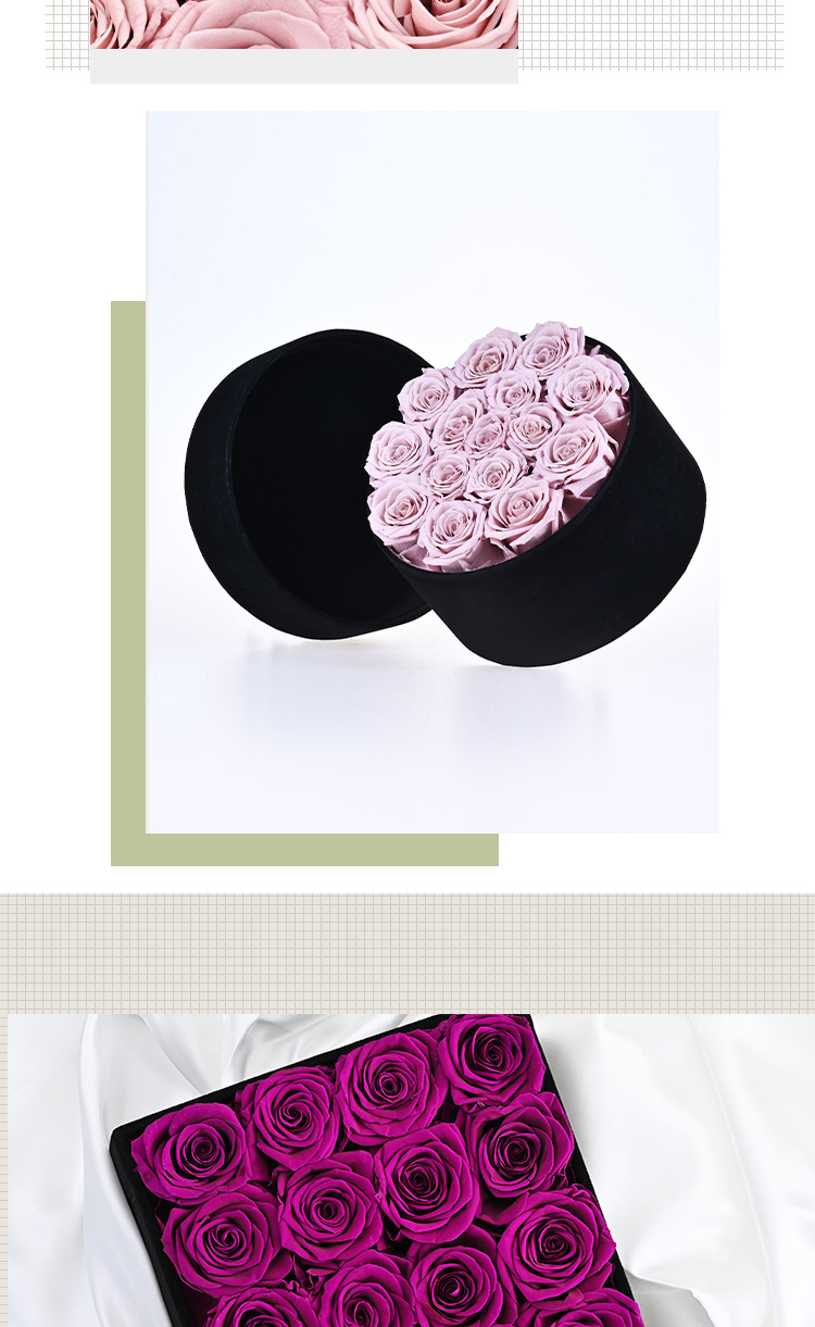 Cubo de rosas eternas con tapa, caja de regalo redonda y cuadrada, adorno de Amazon para comercio electrónico transfronterizo, caja de regalo de flores eternas.