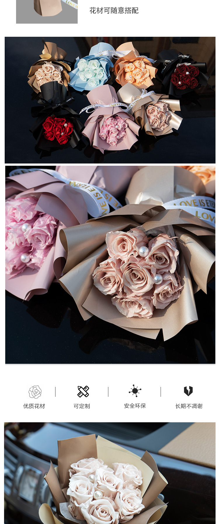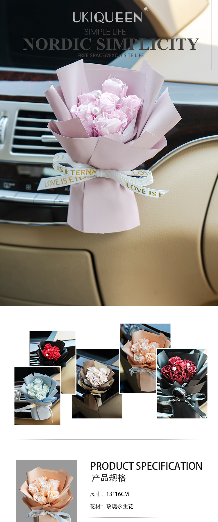 Mini rosas de flores eternas, 6 pequeños ramos para decoración de coches, regalo del Día de San Valentín para novia, regalo creativo y de alta gama con flores reales